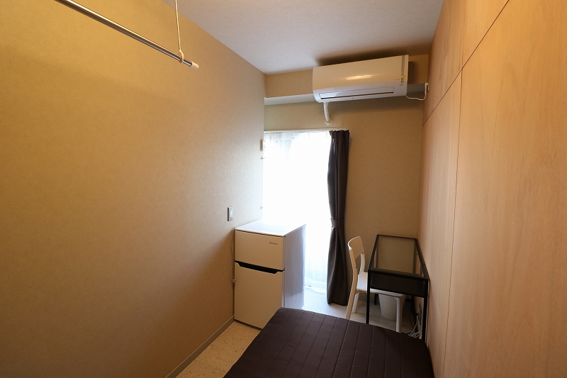 | 部屋設備 | ベッド、机、イス、照明器具、エアコン、冷蔵庫、カーテン、クローゼット |