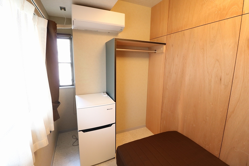 | 部屋設備 | ベッド、机、イス、照明器具、エアコン、冷蔵庫、カーテン、クローゼット |