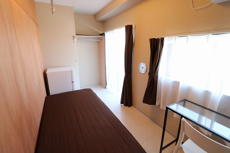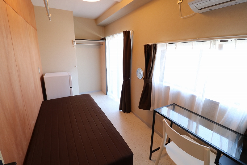 | 部屋設備 | ベッド、机、イス、照明器具、エアコン、冷蔵庫、カーテン、クローゼット |