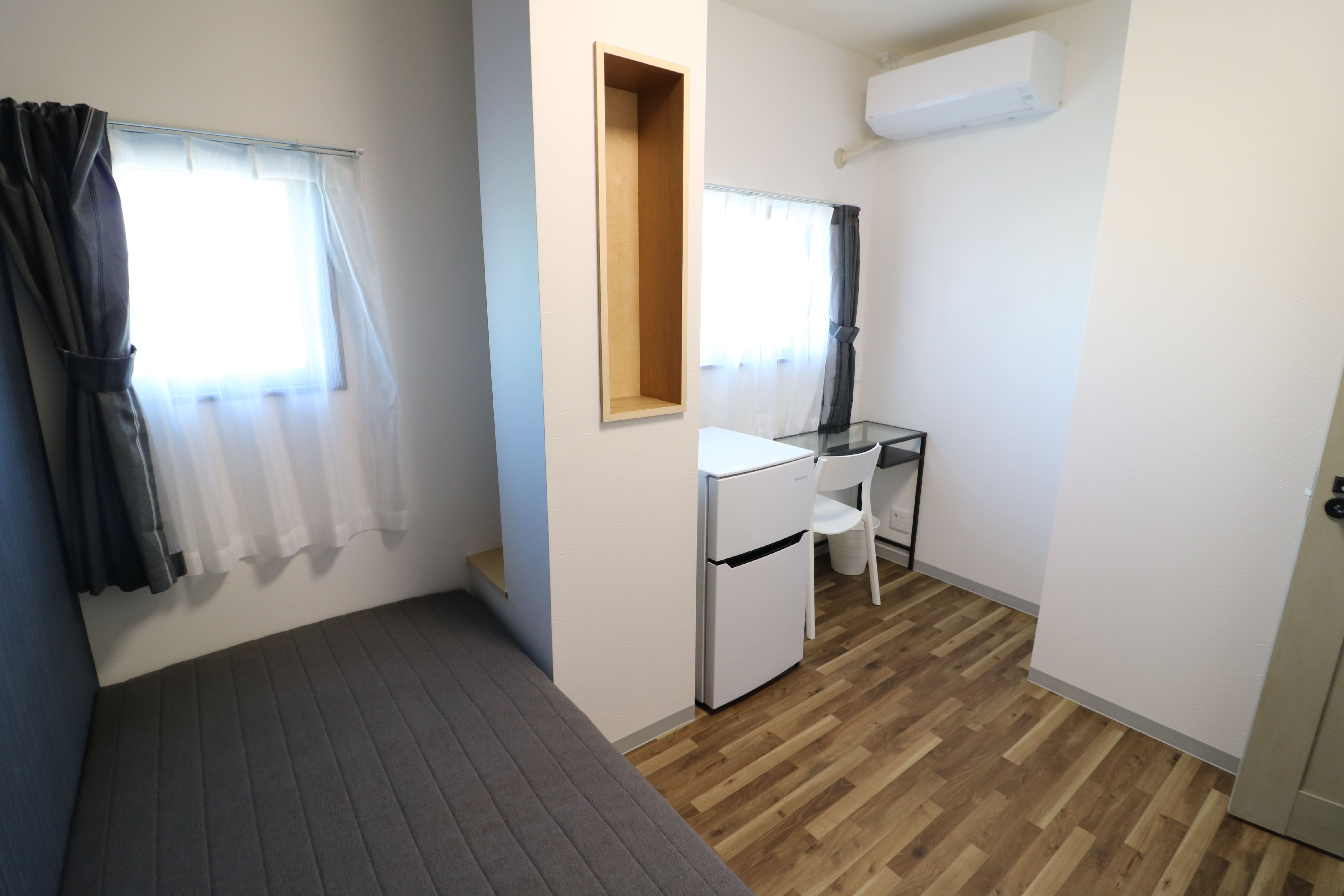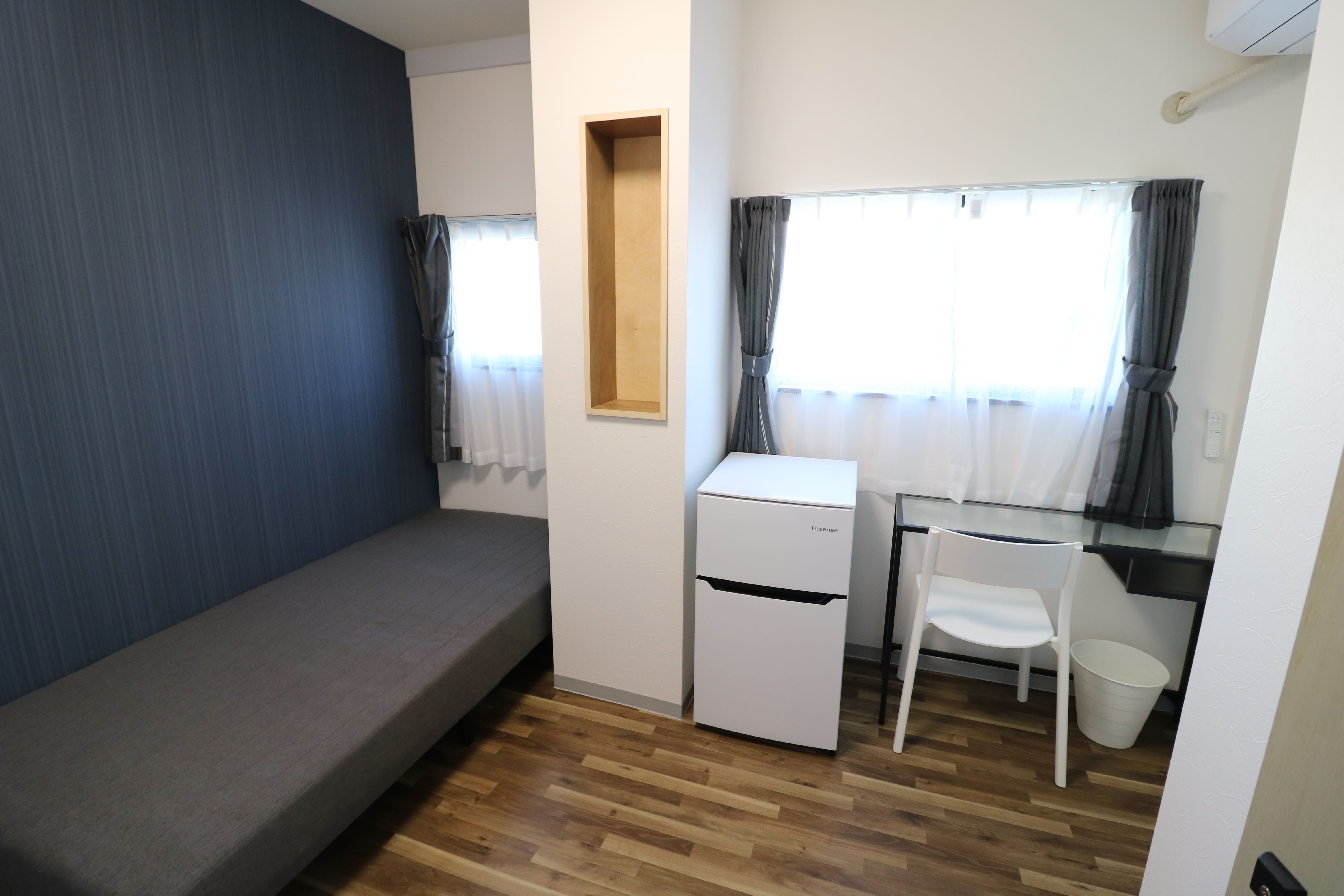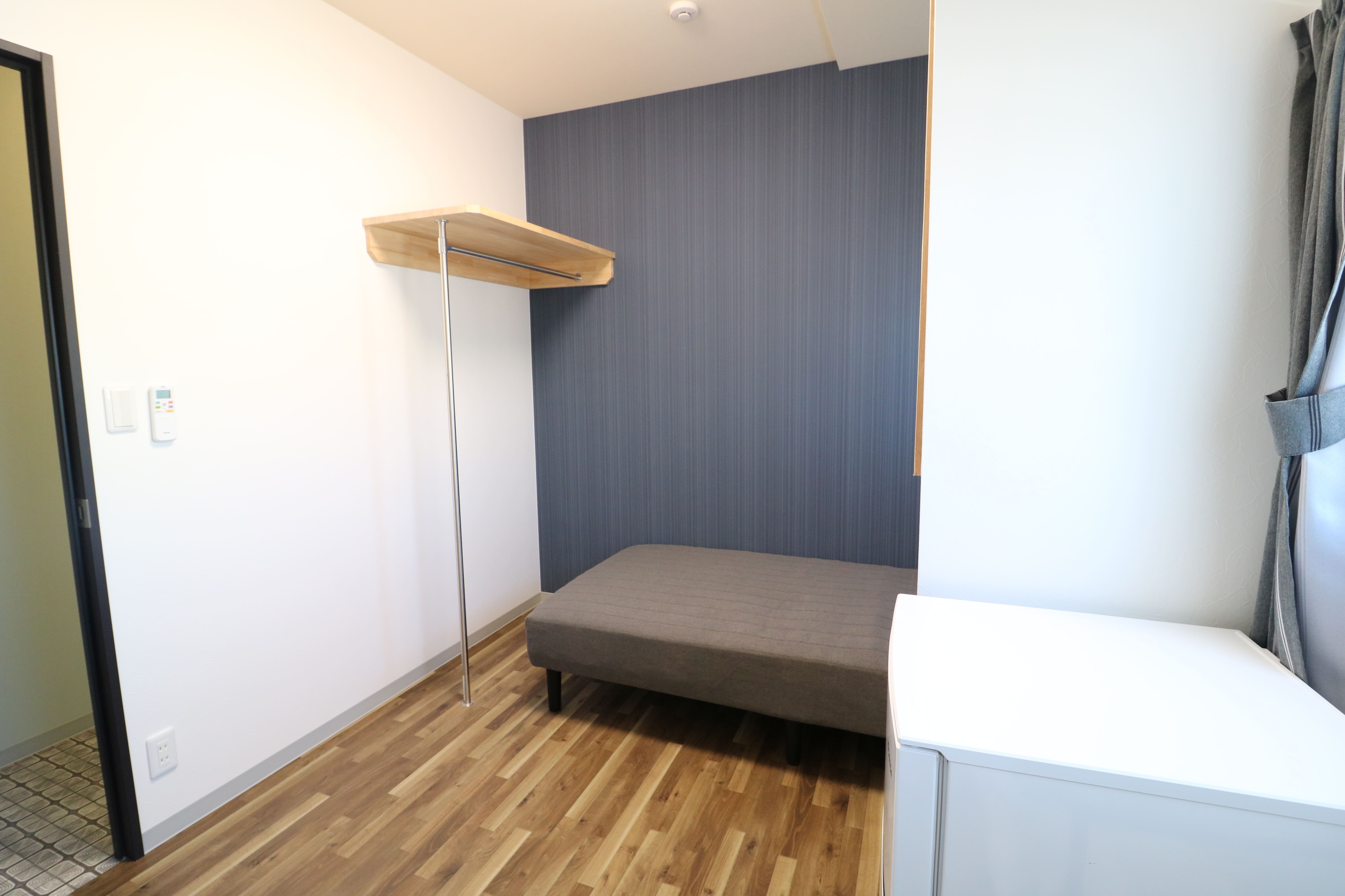 | 部屋設備 | ベッド、机、イス、照明器具、エアコン、冷蔵庫、カーテン、クローゼット |