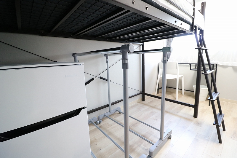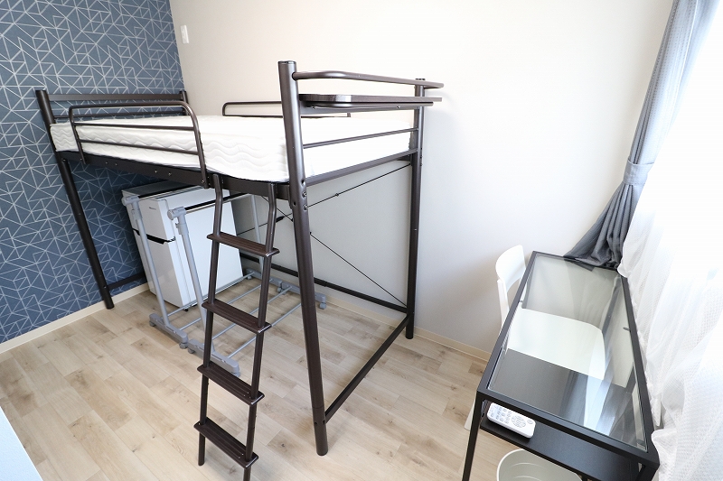 | 部屋設備 | ロフトベッド、机、イス、照明器具、エアコン、冷蔵庫、カーテン、クローゼット |