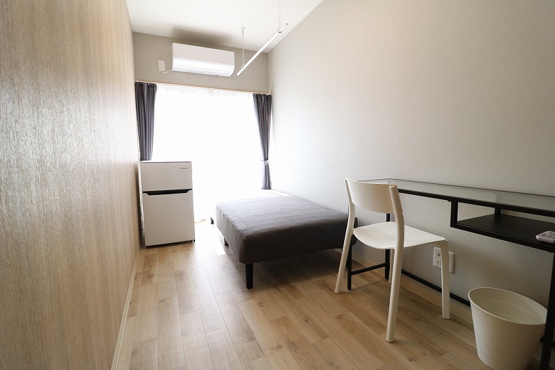 | 部屋設備 | ベッド、机、イス、照明器具、エアコン、冷蔵庫、カーテン、クローゼット |
