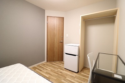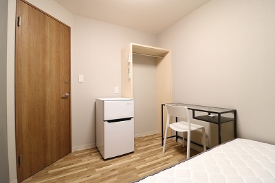 | 部屋設備 | ベッド、机、イス、照明器具、エアコン、冷蔵庫、カーテン、クローゼット |