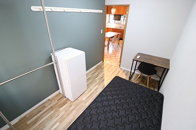 | 部屋設備 | ベッド、机、イス、照明器具、エアコン、冷蔵庫、カーテン、クローゼット |