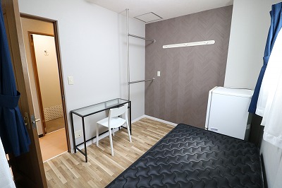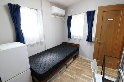 | 部屋設備 | ベッド、机、イス、照明器具、エアコン、冷蔵庫、カーテン、クローゼット |