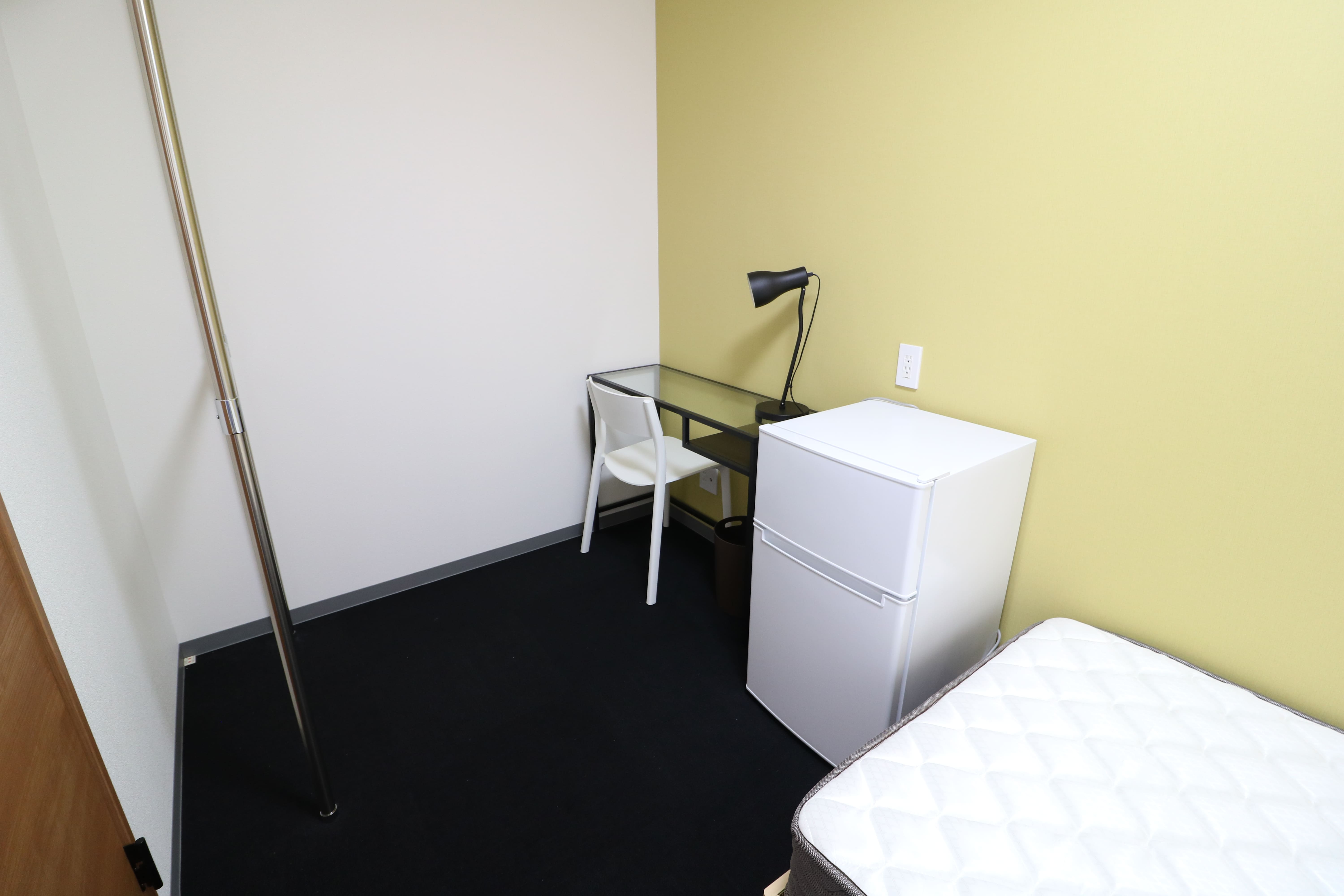 | 部屋設備 | シングルベッド、マットレス、机、椅子、冷蔵庫、シーリングライト、デスクライト、ハンガーポール、カーテン、冷房専用エアコン、パネルヒーター、テレビジャック |