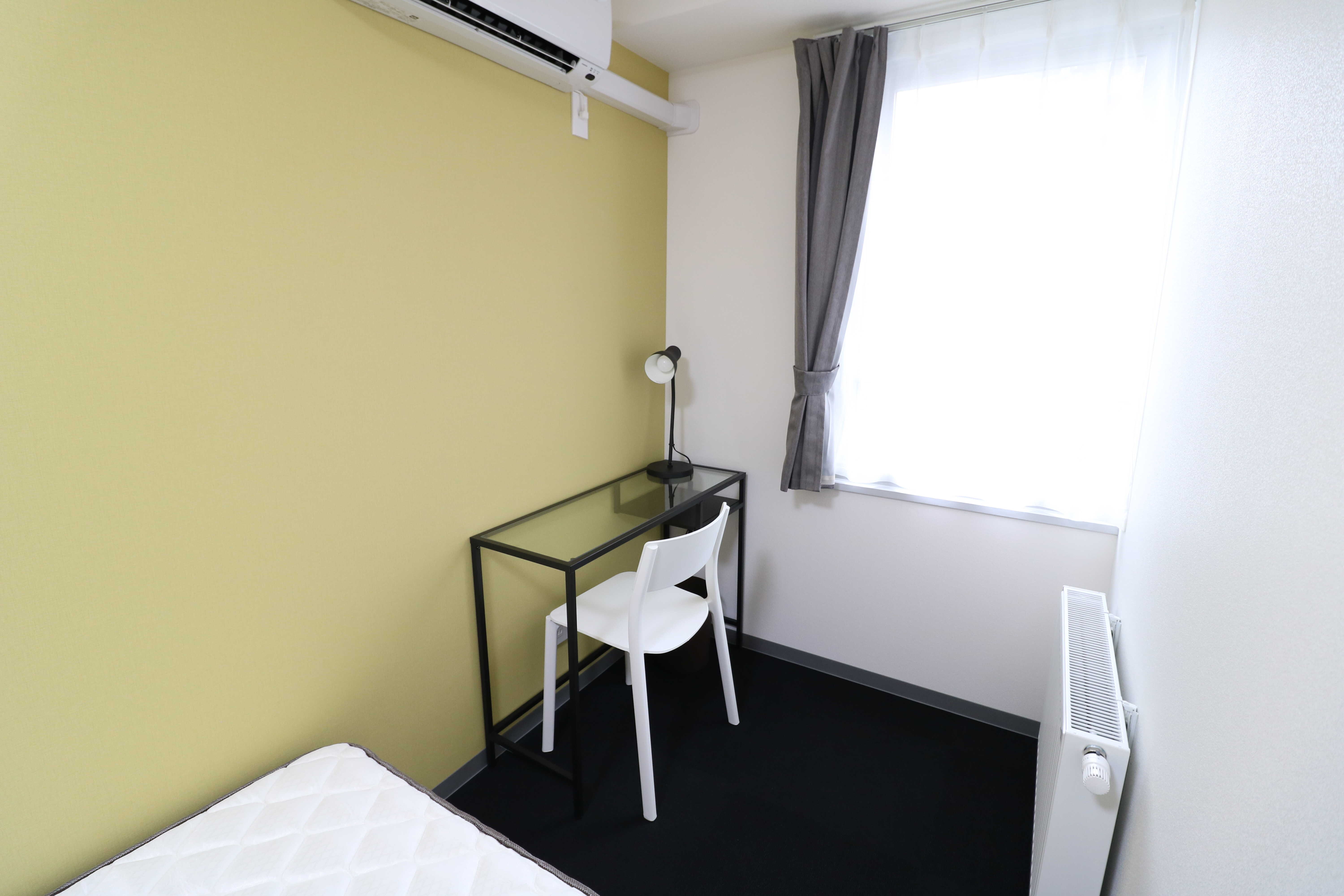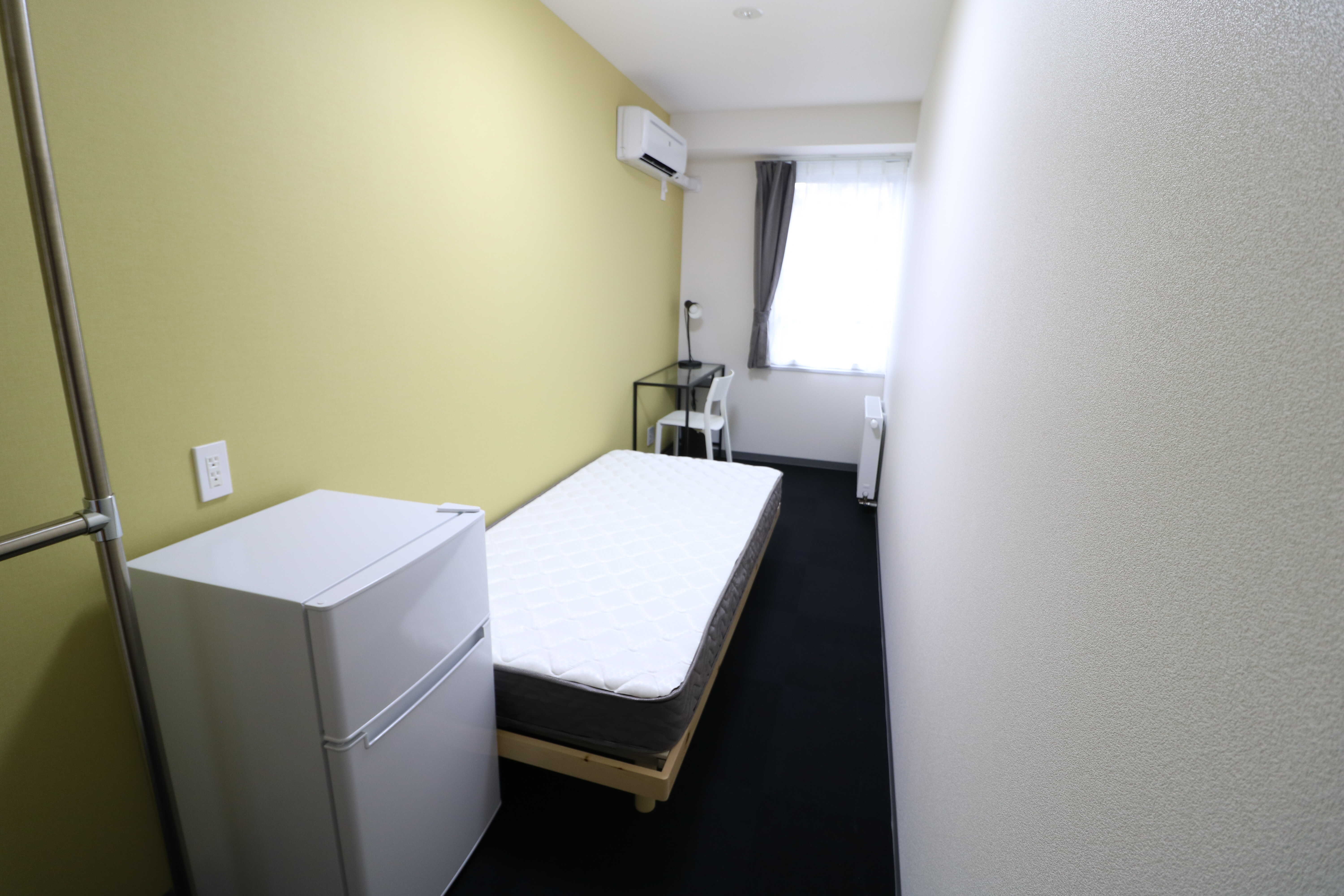 | 部屋設備 | シングルベッド、マットレス、机、椅子、冷蔵庫、シーリングライト、デスクライト、ハンガーポール、カーテン、冷房専用エアコン、パネルヒーター、テレビジャック |