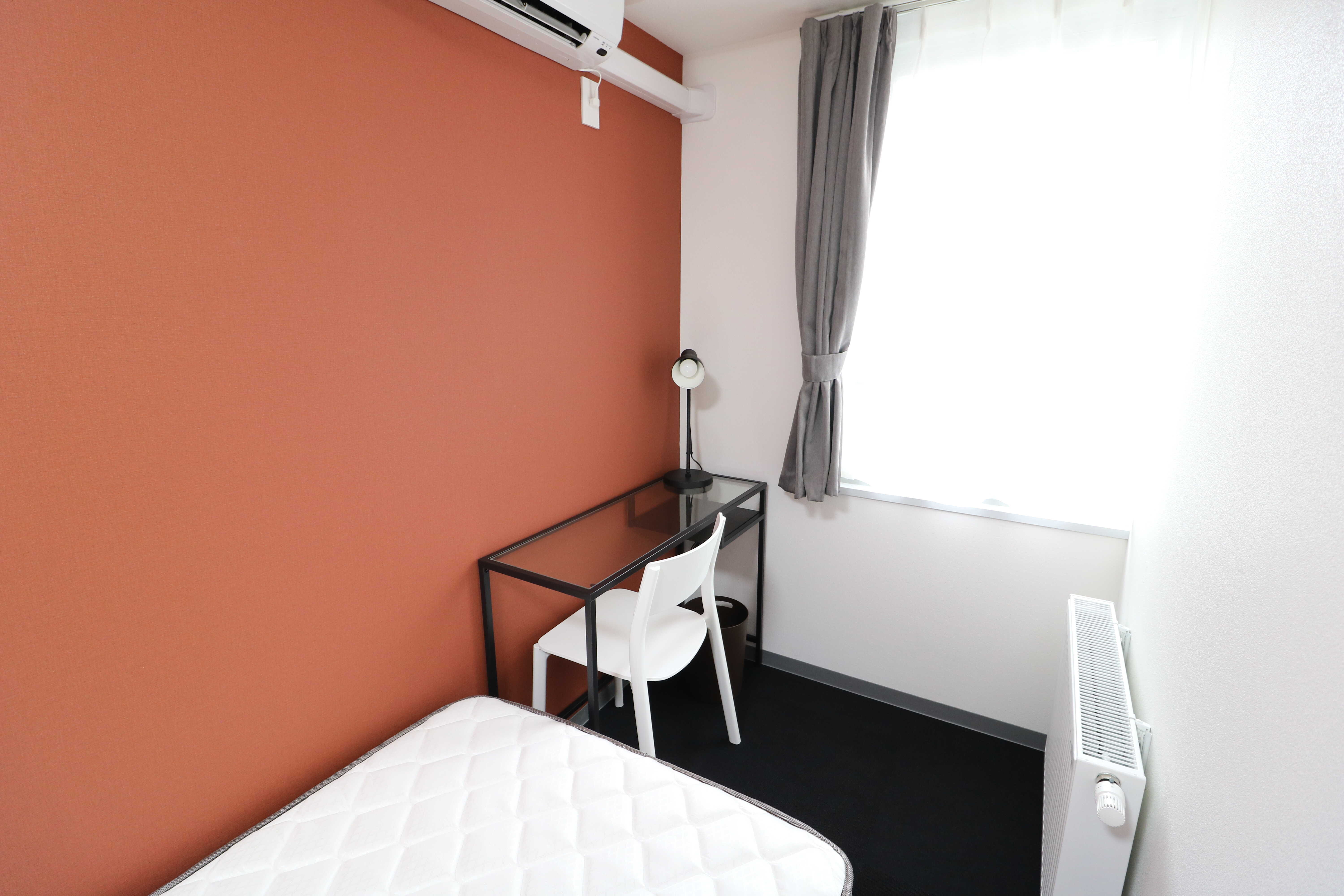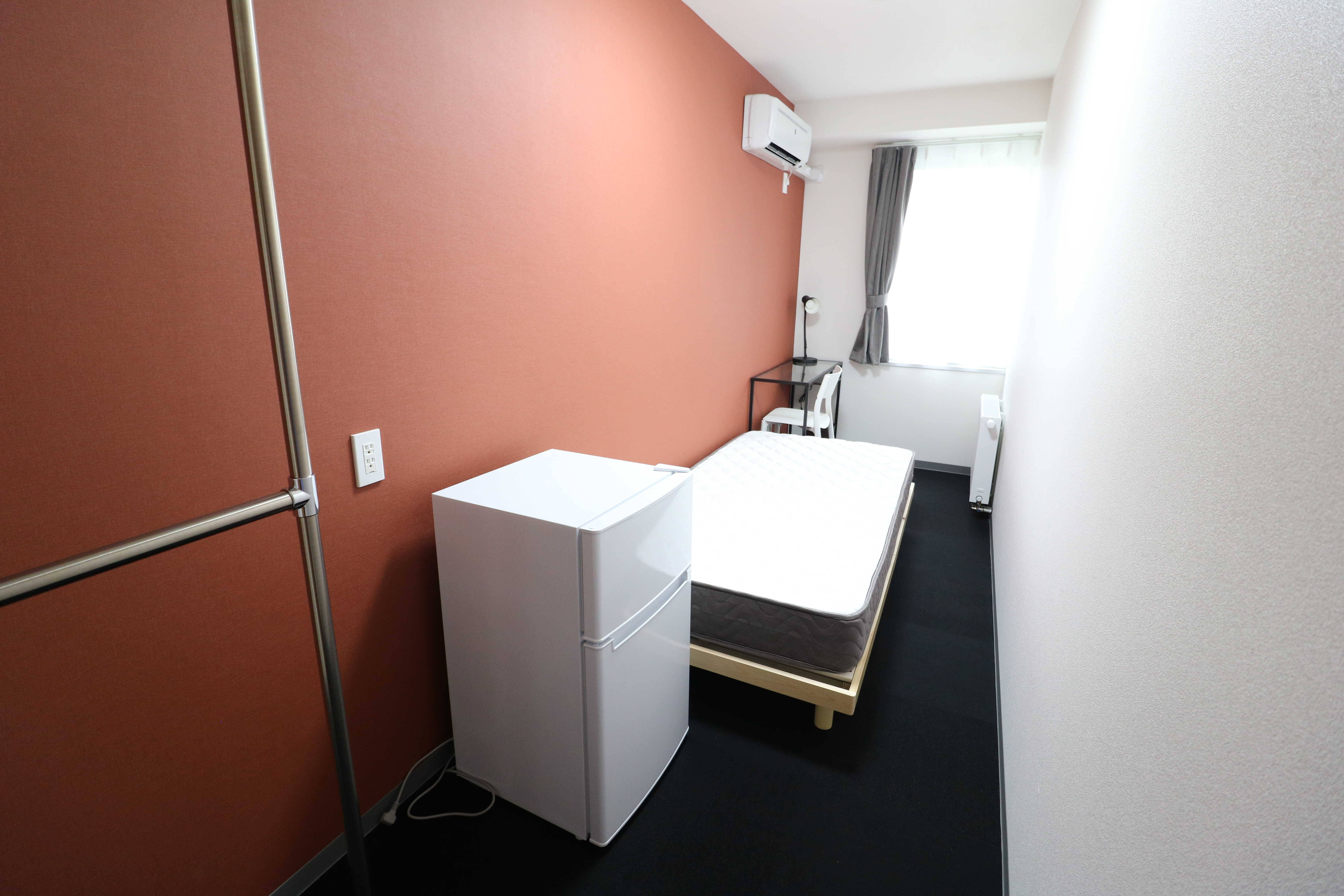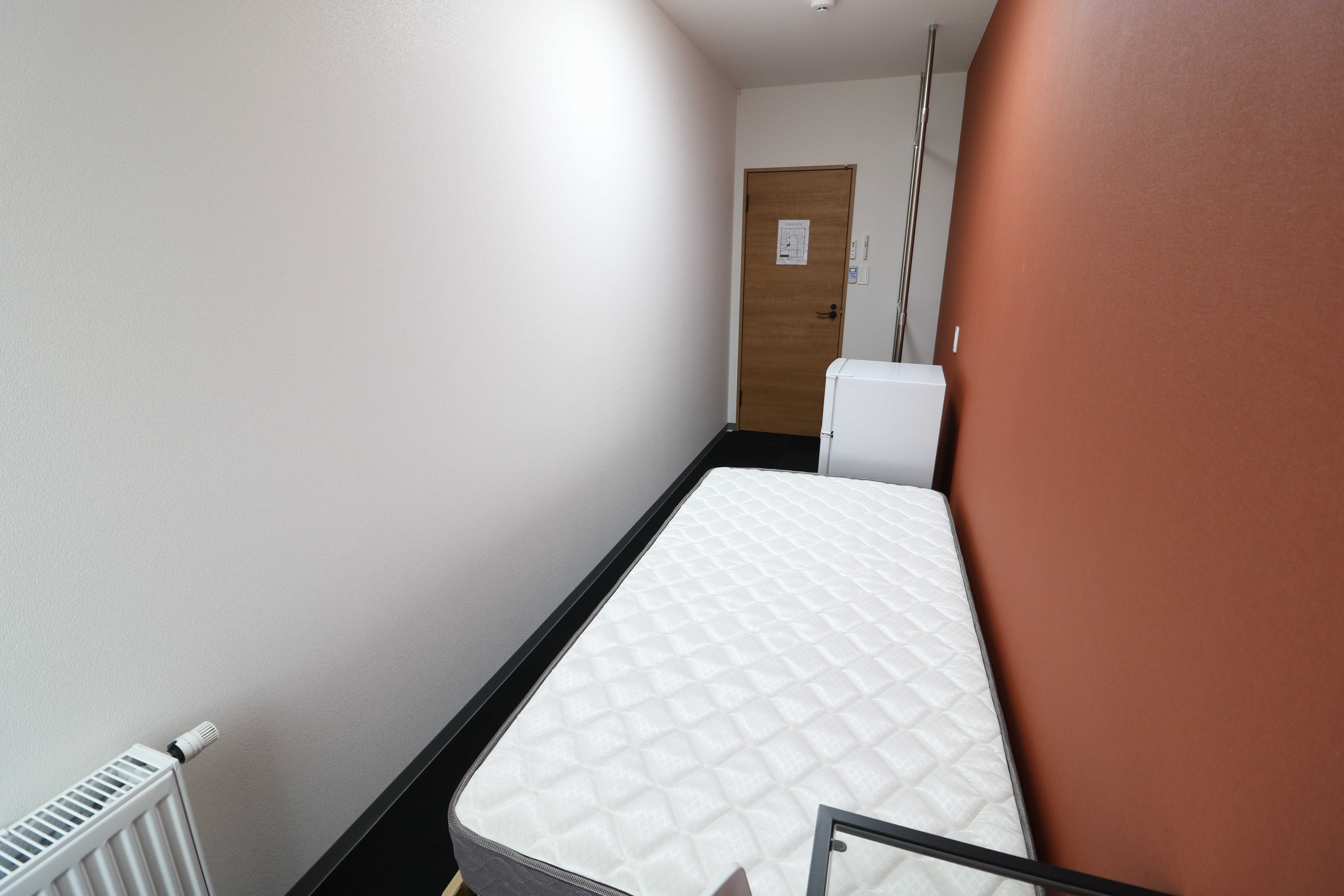 | 部屋設備 | シングルベッド、マットレス、机、椅子、冷蔵庫、シーリングライト、デスクライト、ハンガーポール、カーテン、冷房専用エアコン、パネルヒーター、テレビジャック |