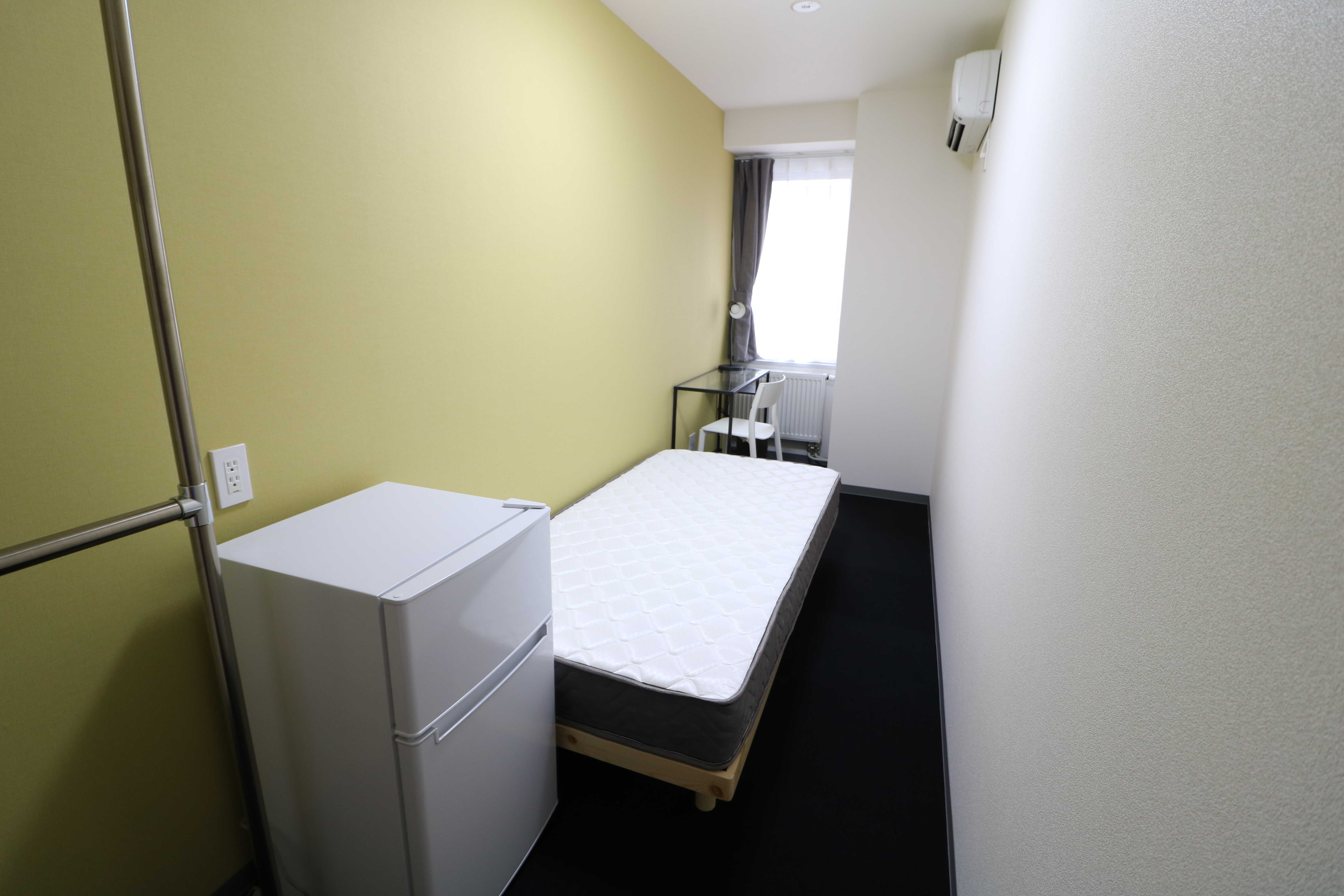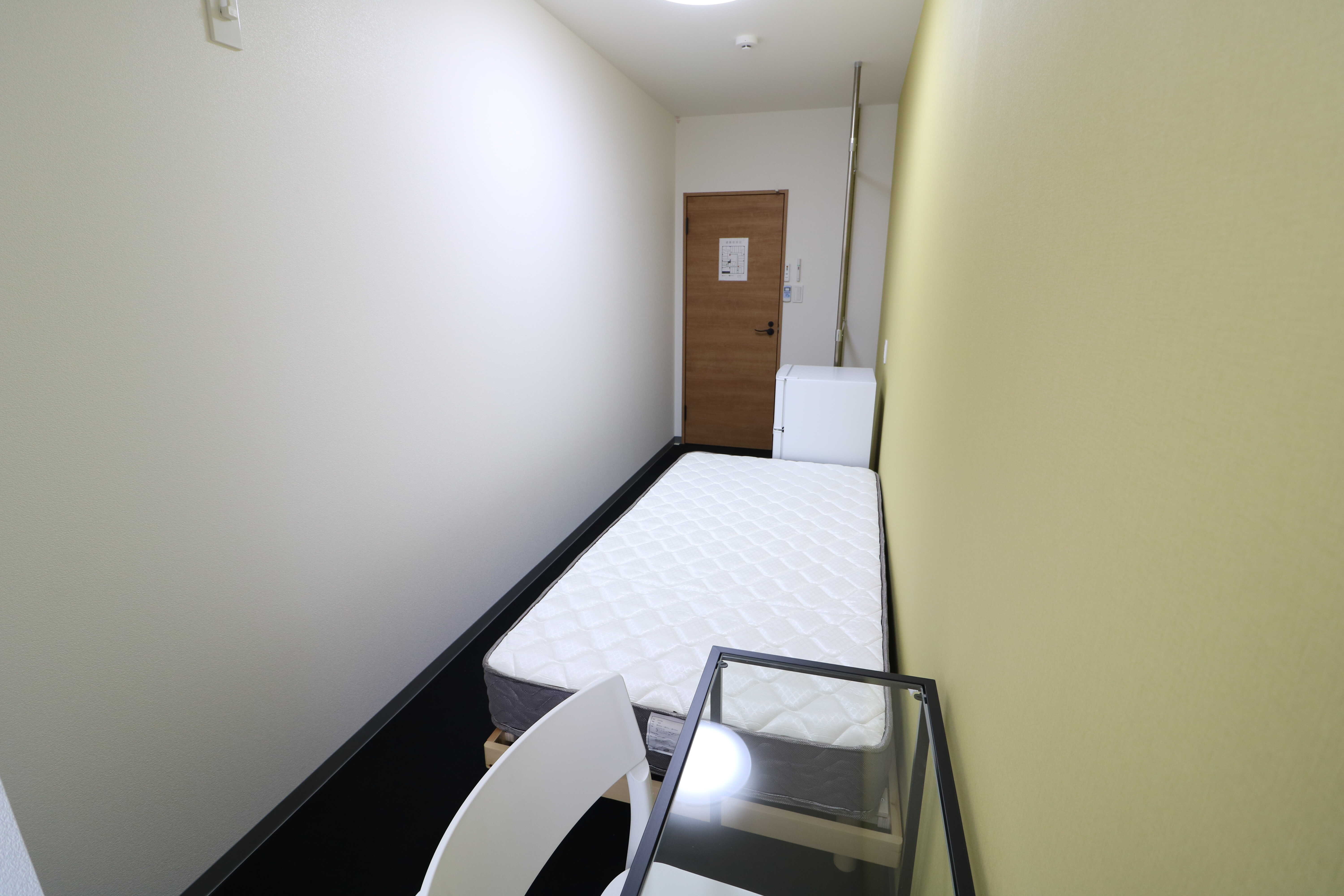 | 部屋設備 | シングルベッド、マットレス、机、椅子、冷蔵庫、シーリングライト、デスクライト、ハンガーポール、カーテン、冷房専用エアコン、パネルヒーター、テレビジャック |