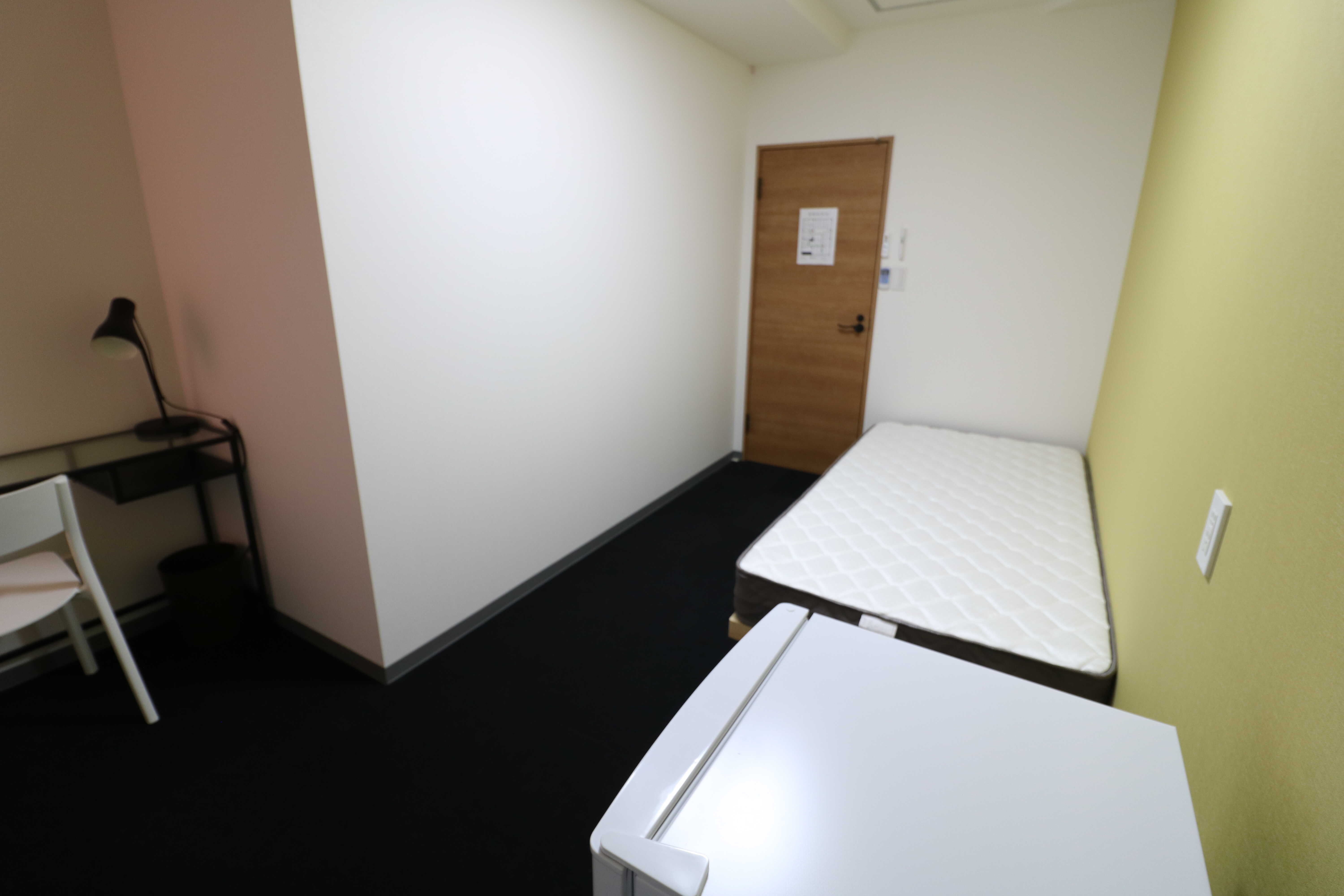 | 部屋設備 | シングルベッド、マットレス、机、椅子、冷蔵庫、シーリングライト、デスクライト、ハンガーポール、カーテン、冷房専用エアコン、パネルヒーター、テレビジャック |