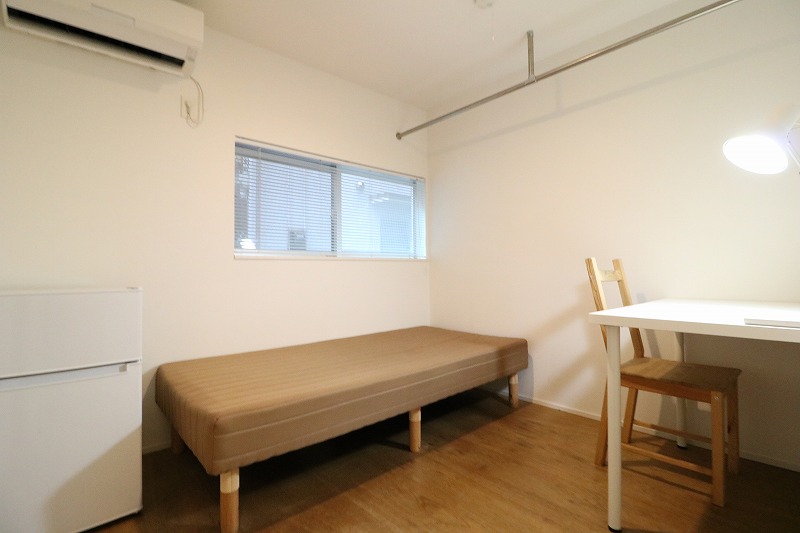 | 部屋設備 | ベッド、机、イス、照明器具、エアコン、冷蔵庫、ブラインド、天井付ハンガーパイプ、デスクライト |