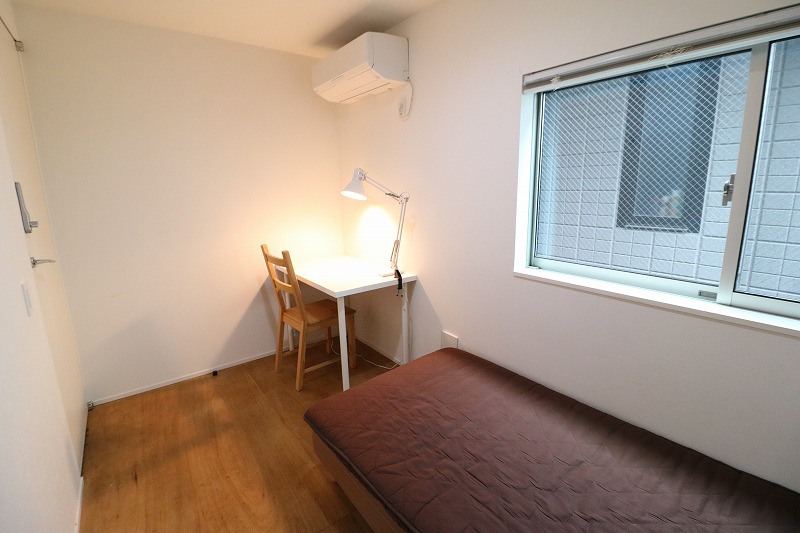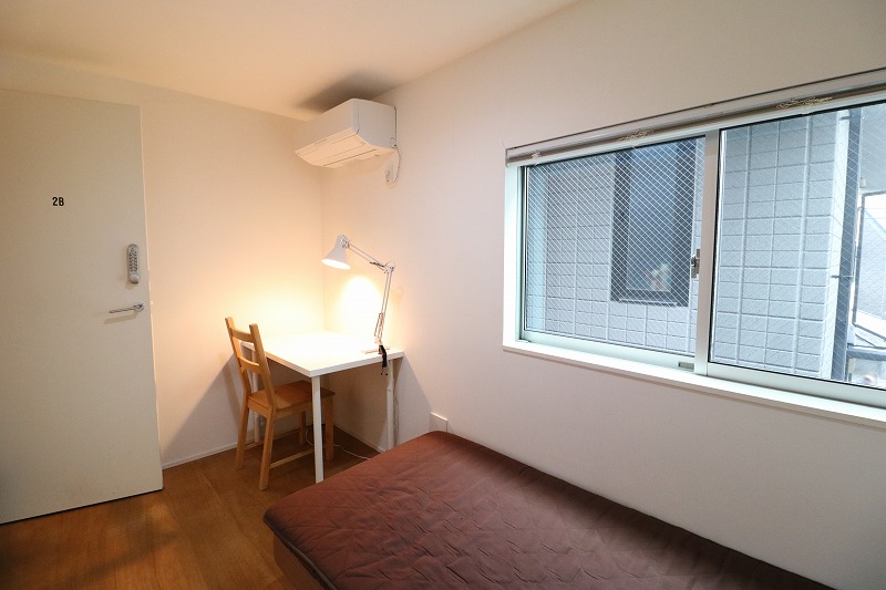 | 部屋設備 | ベッド、机、イス、照明器具、エアコン、冷蔵庫、ブラインド、天井付ハンガーパイプ、デスクライト |
