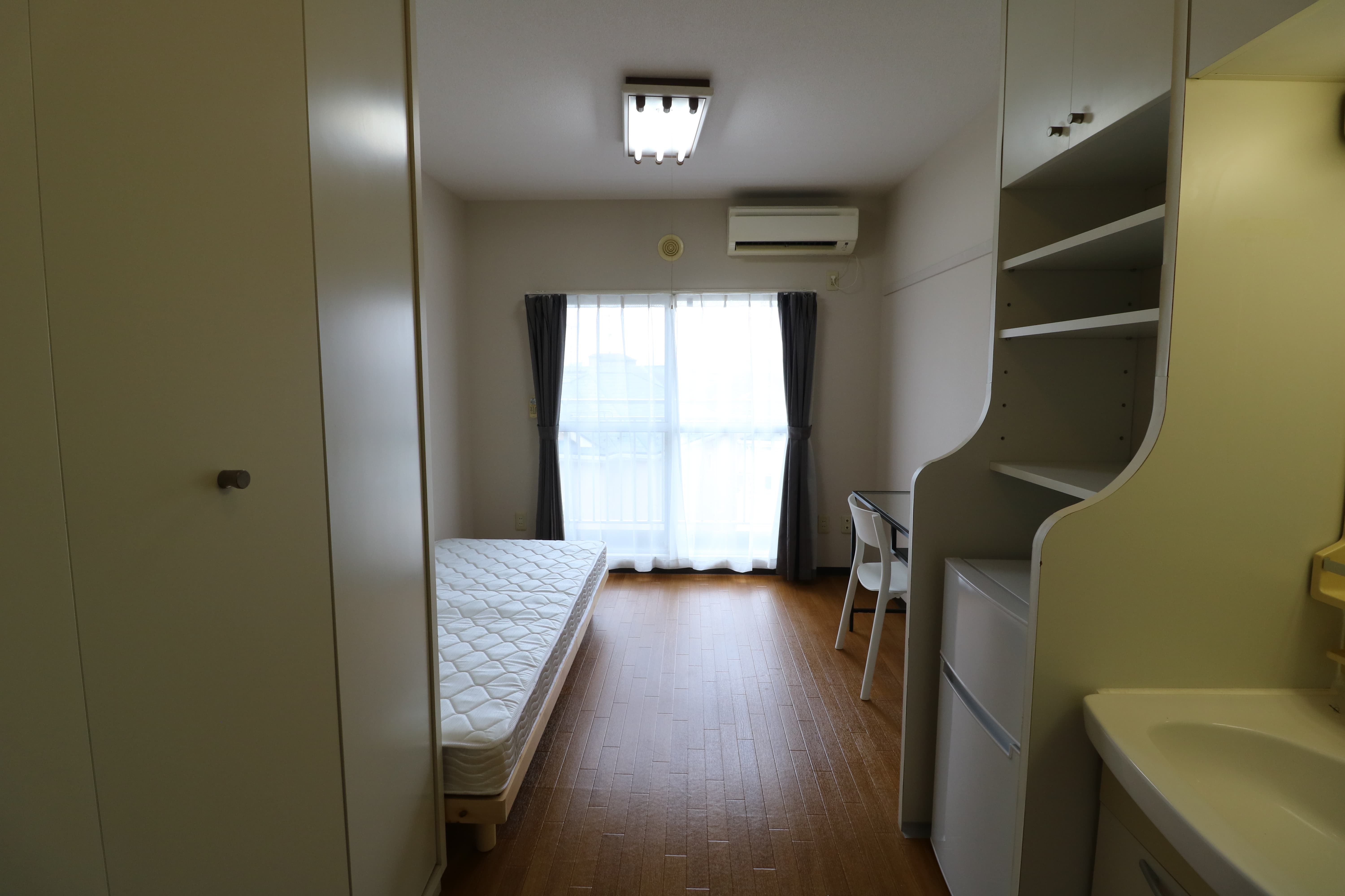 | 部屋設備 | 机、イス、冷蔵庫、ベッド、照明器具、エアコン、カーテン、収納、洗面台、バルコニー |
