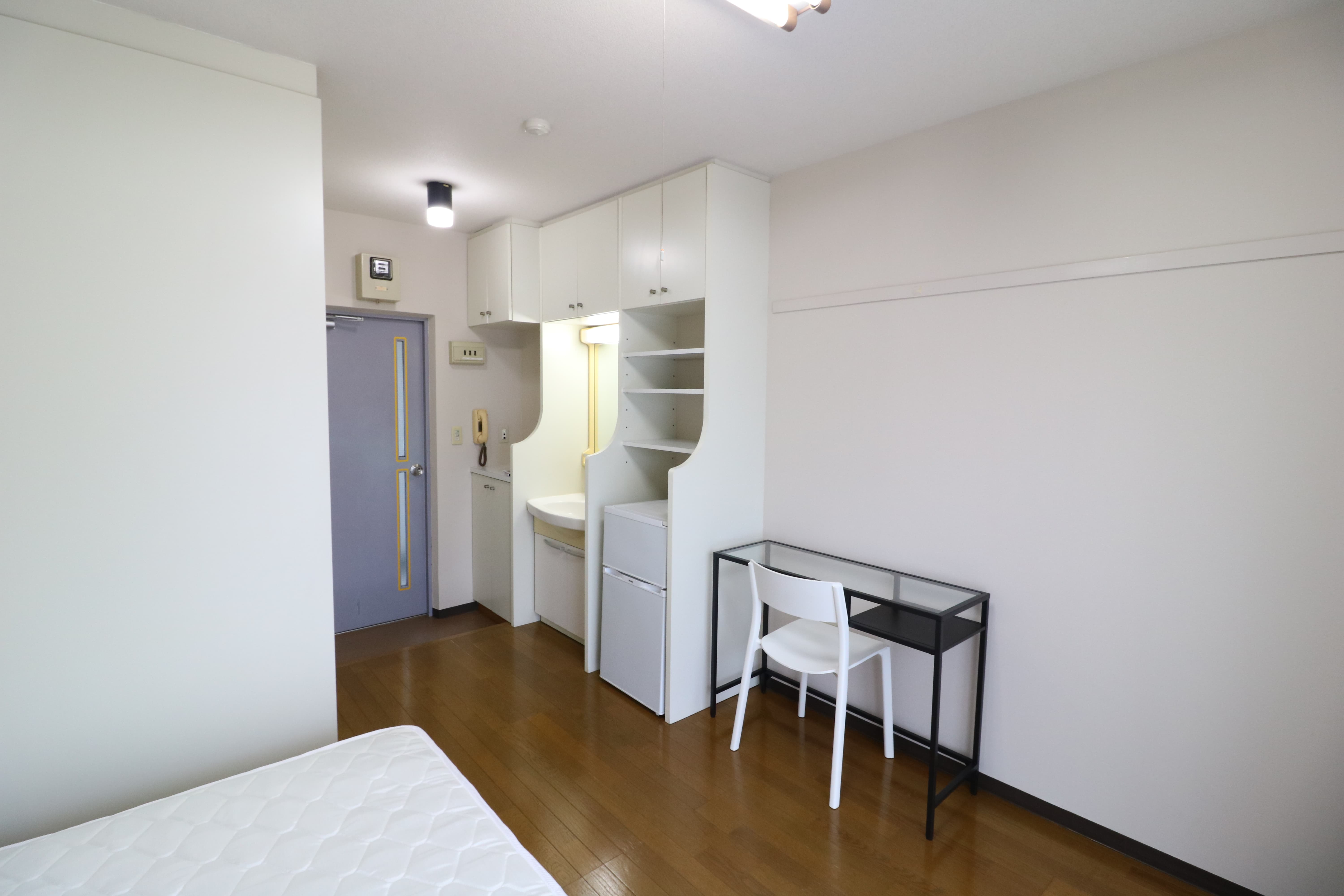 | 部屋設備 | 机、イス、冷蔵庫、ベッド、照明器具、エアコン、カーテン、収納、洗面台、バルコニー |