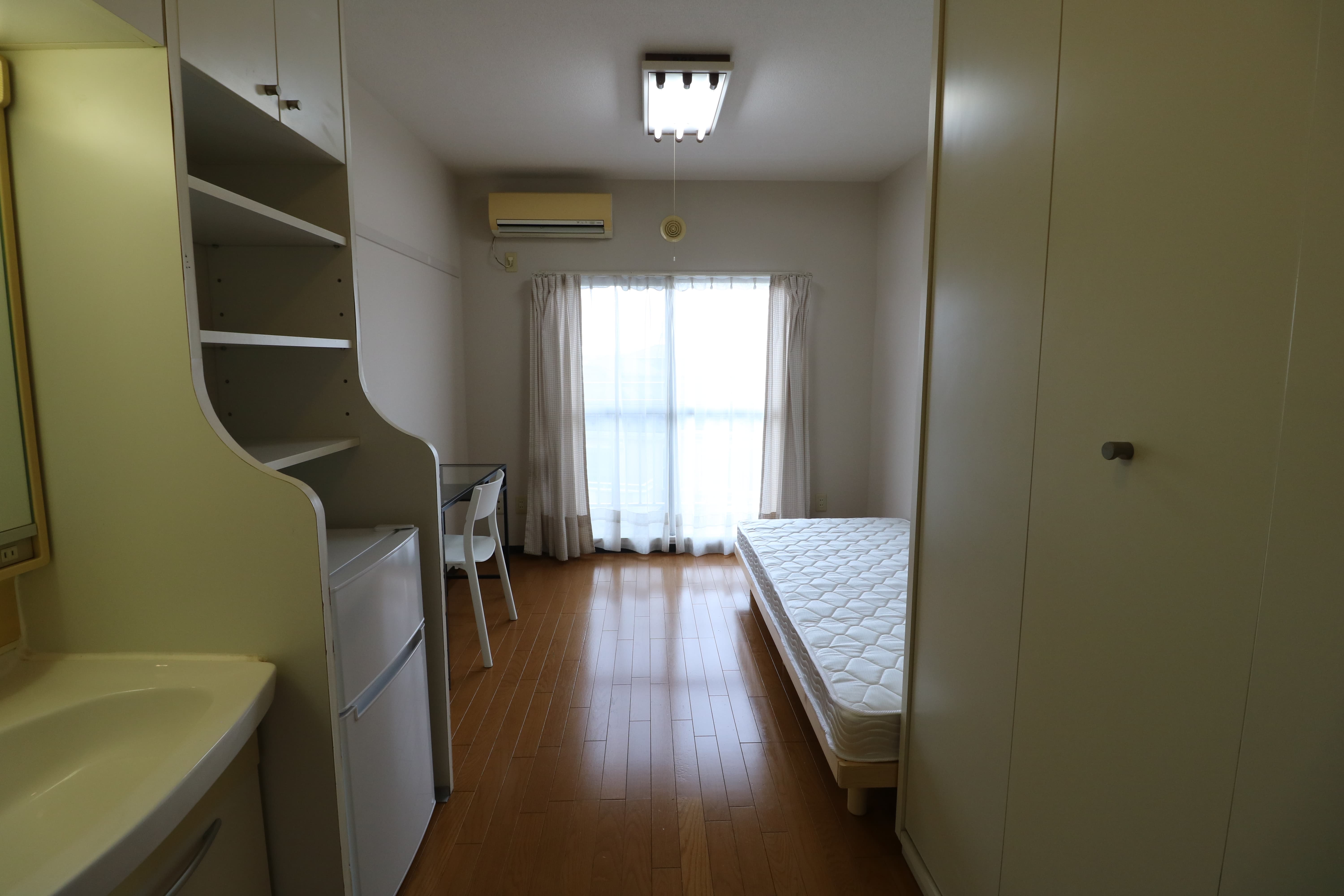 | 部屋設備 | 机、イス、冷蔵庫、ベッド、照明器具、エアコン、カーテン、収納、洗面台、バルコニー |