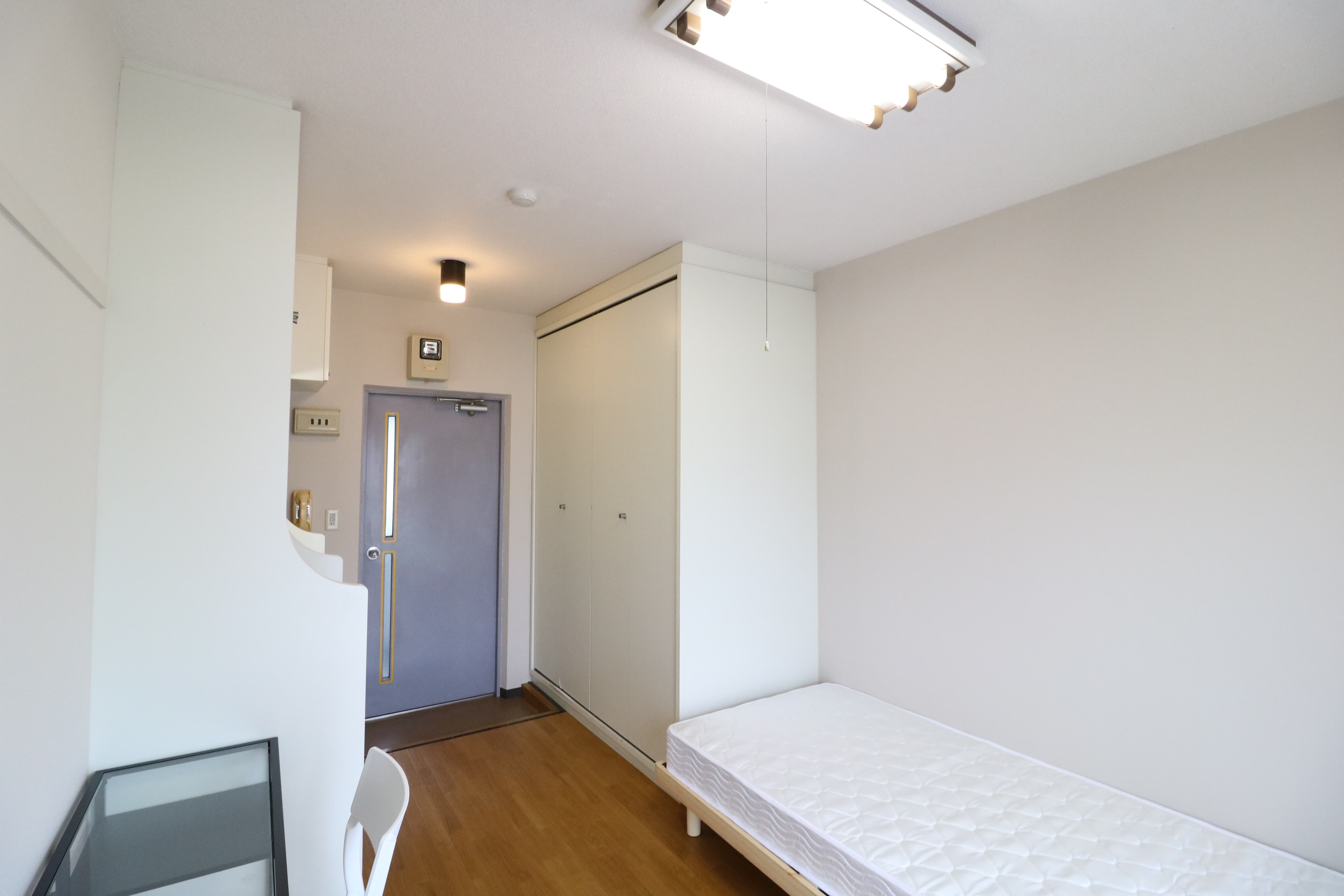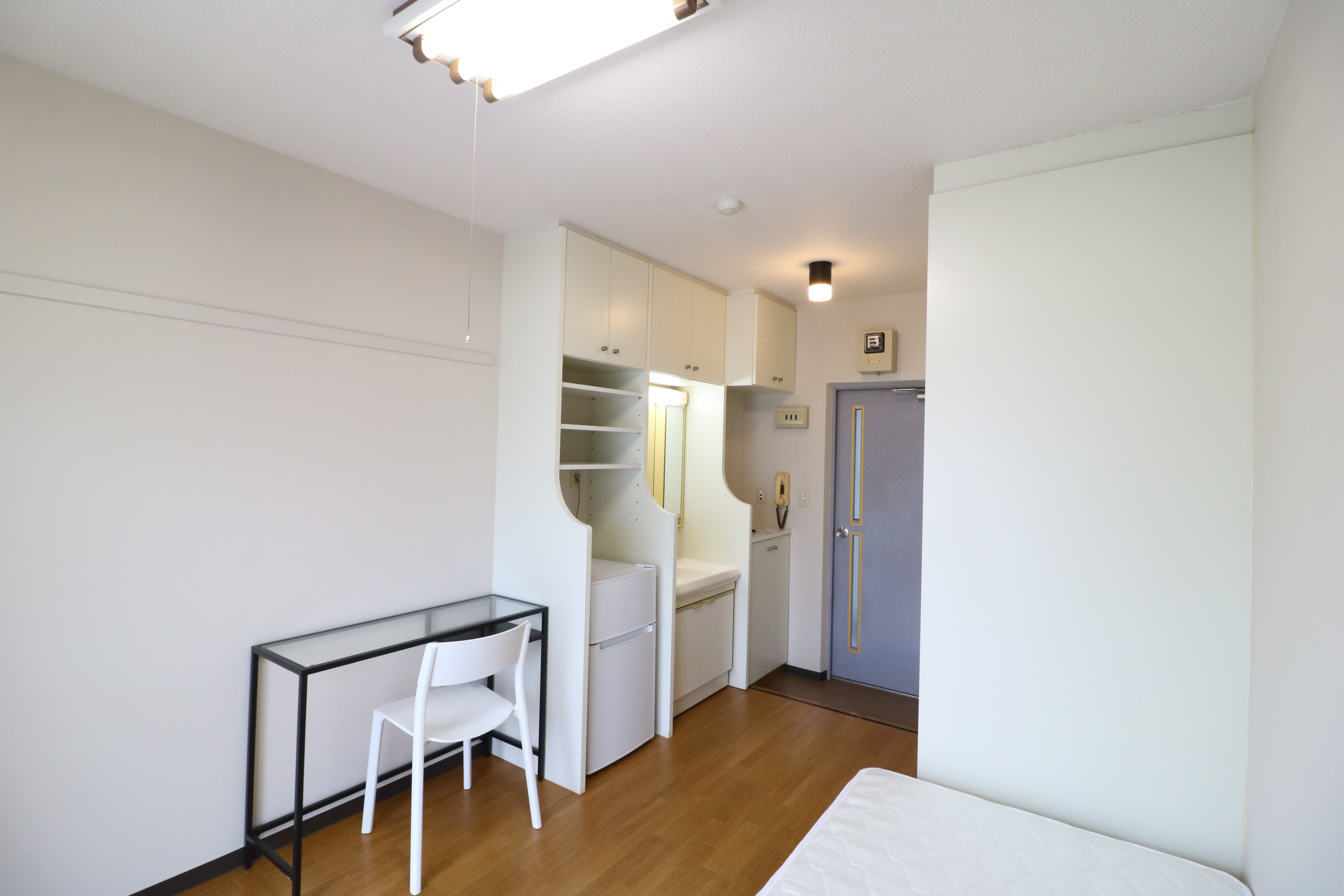 | 部屋設備 | 机、イス、冷蔵庫、ベッド、照明器具、エアコン、カーテン、収納、洗面台、バルコニー |