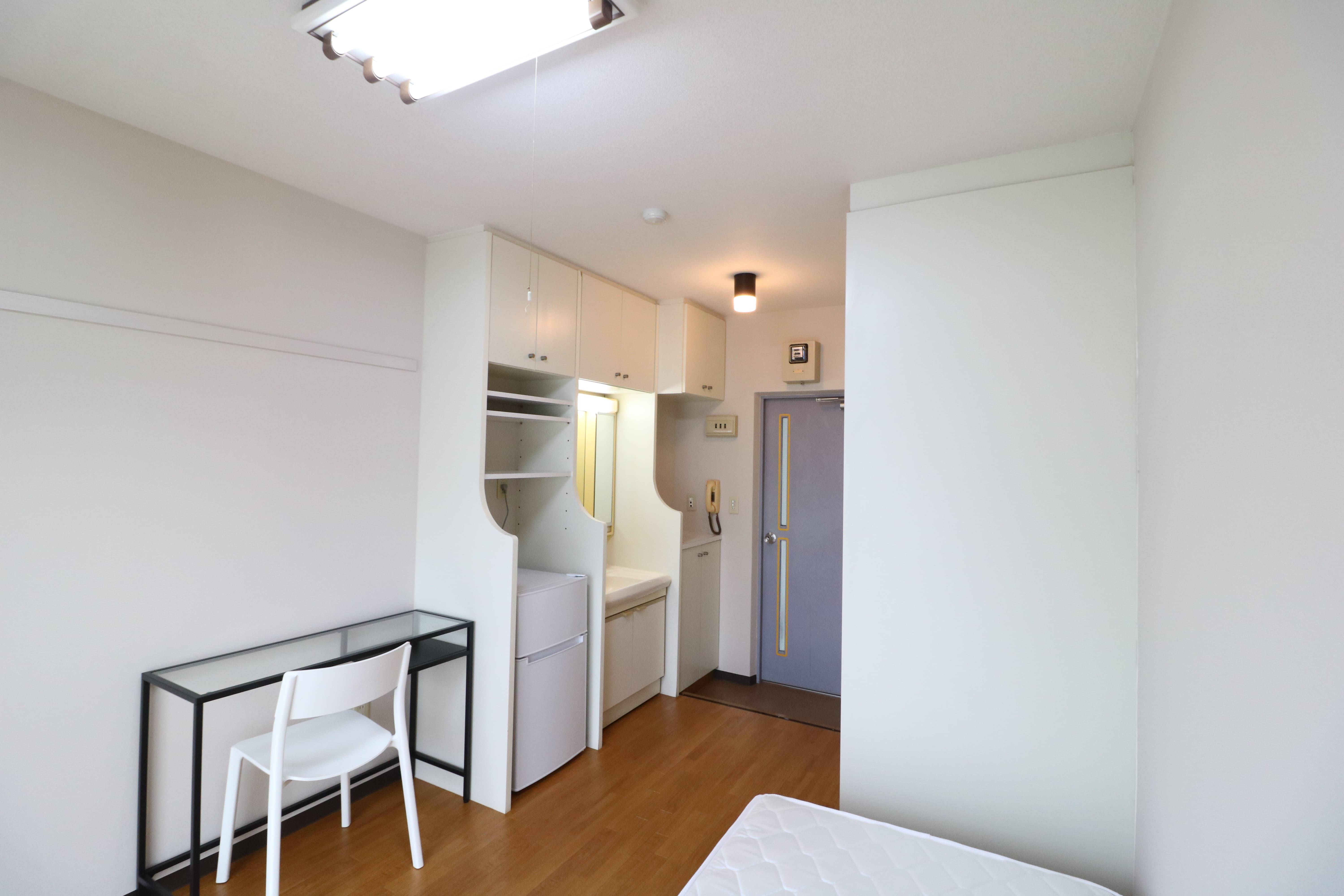 | 部屋設備 | 机、イス、冷蔵庫、ベッド、照明器具、エアコン、カーテン、収納、洗面台、バルコニー |
