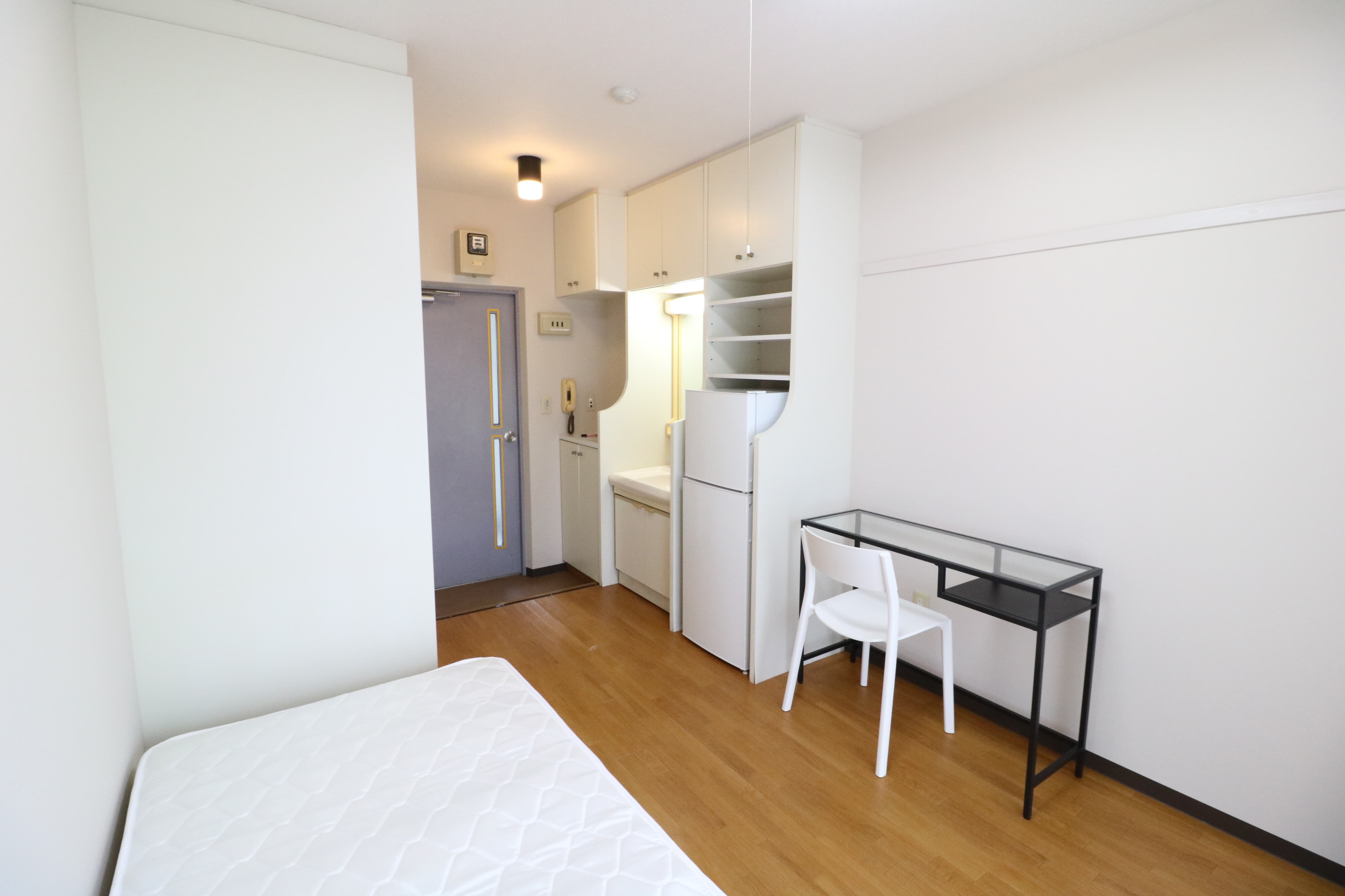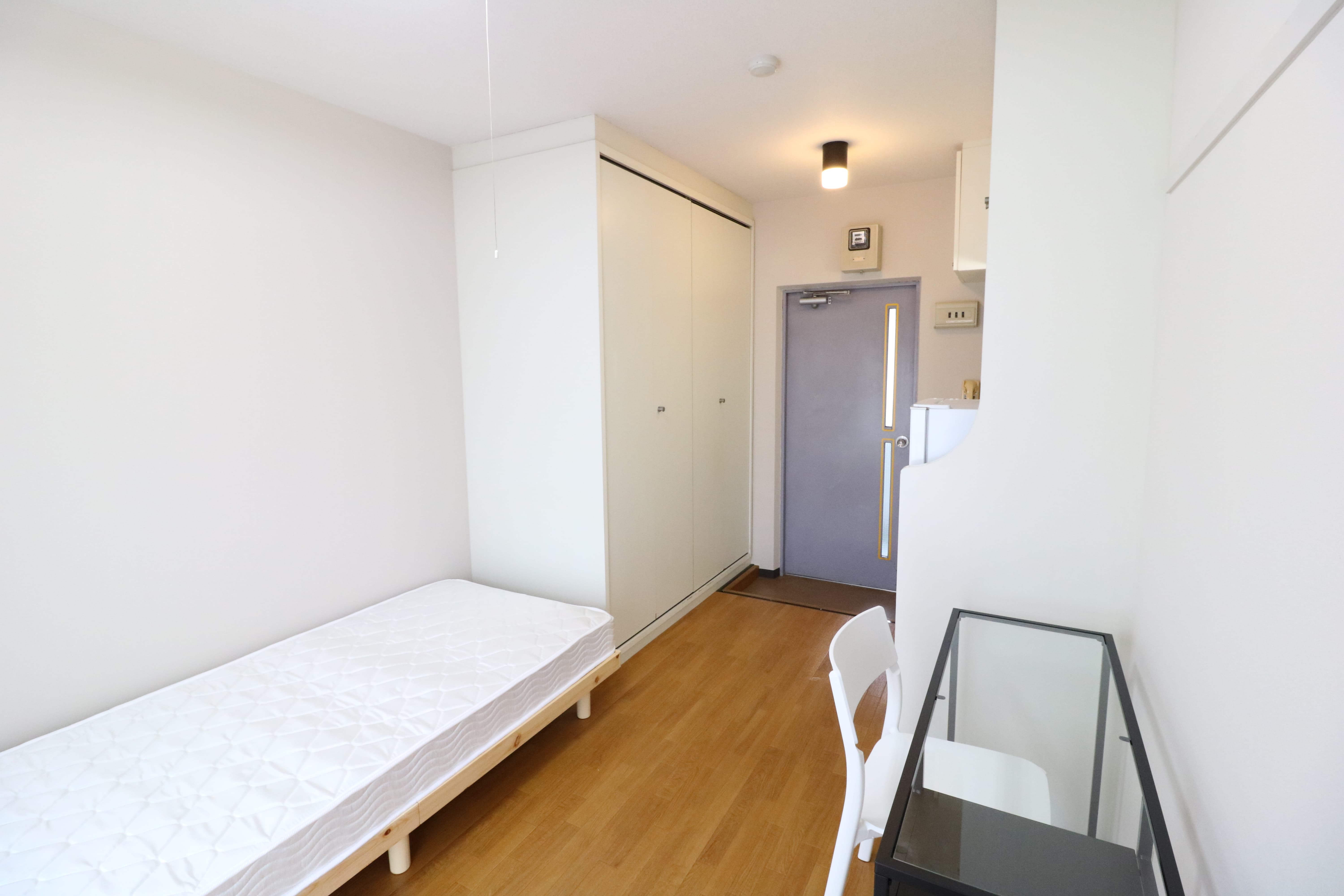 | 部屋設備 | 机、イス、冷蔵庫、ベッド、照明器具、エアコン、カーテン、収納、洗面台、バルコニー |