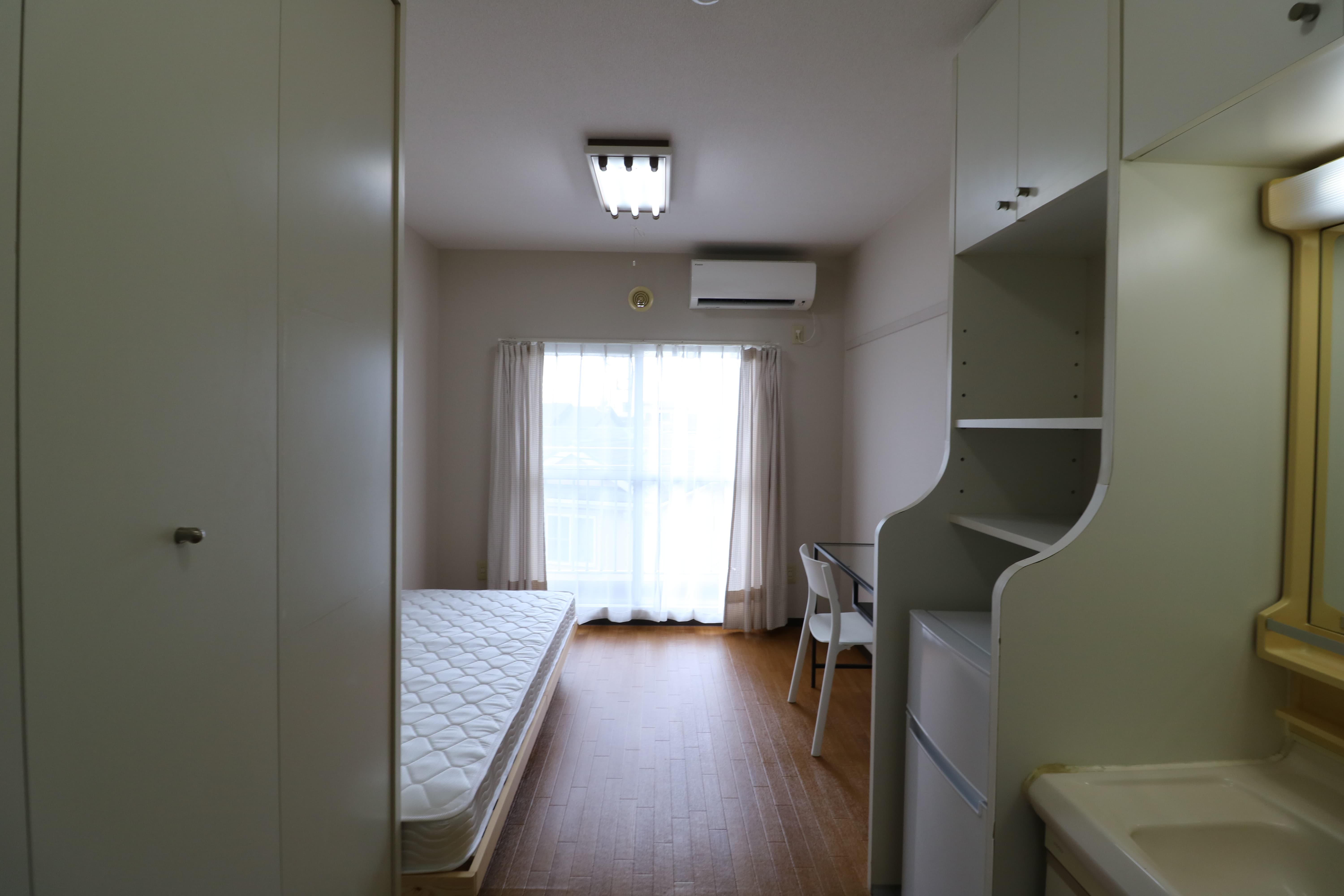 | 部屋設備 | 机、イス、冷蔵庫、ベッド、照明器具、エアコン、カーテン、収納、洗面台、バルコニー |