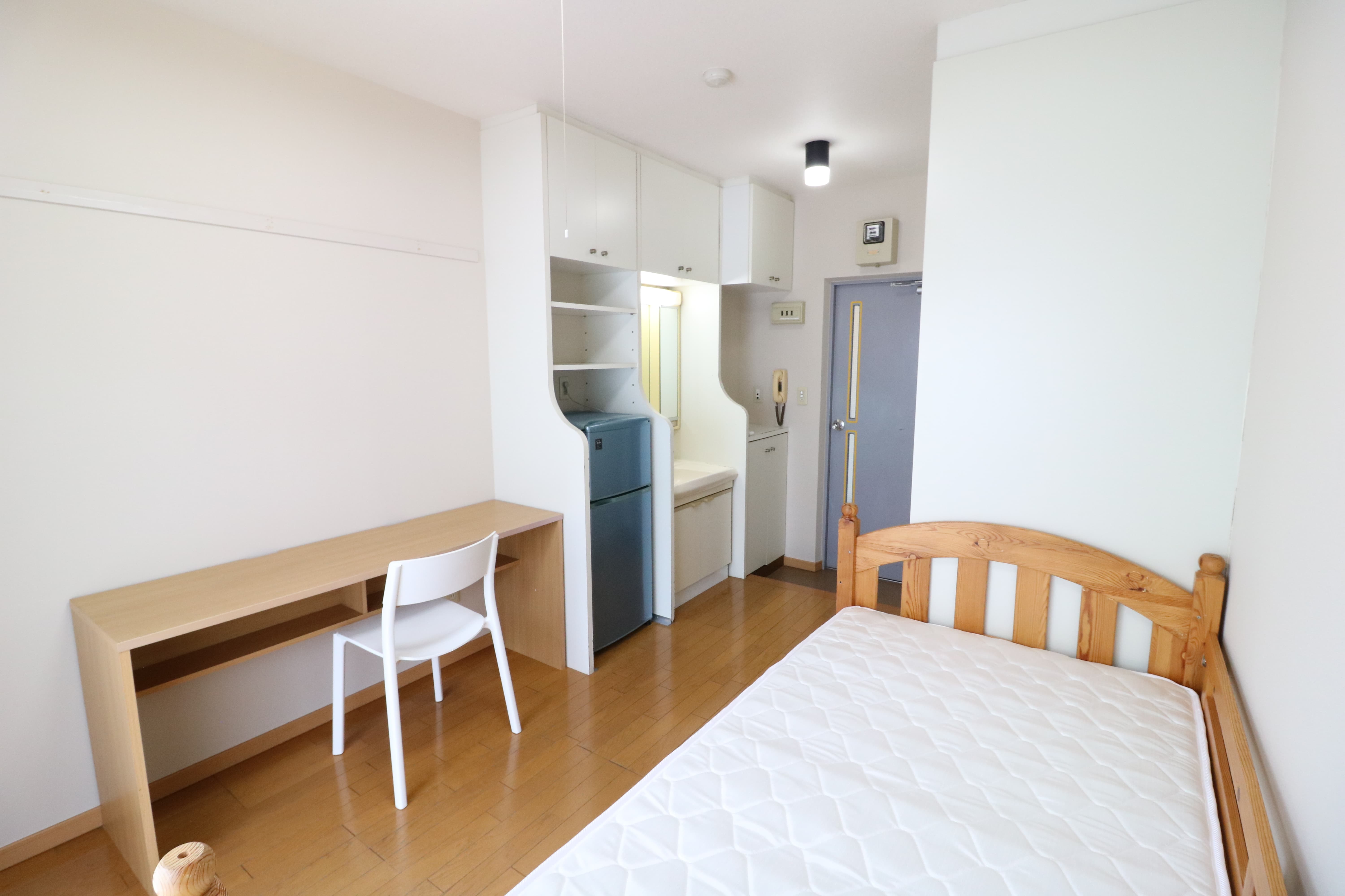 | 部屋設備 | 机、イス、冷蔵庫、ベッド、照明器具、エアコン、カーテン、収納、洗面台、バルコニー |