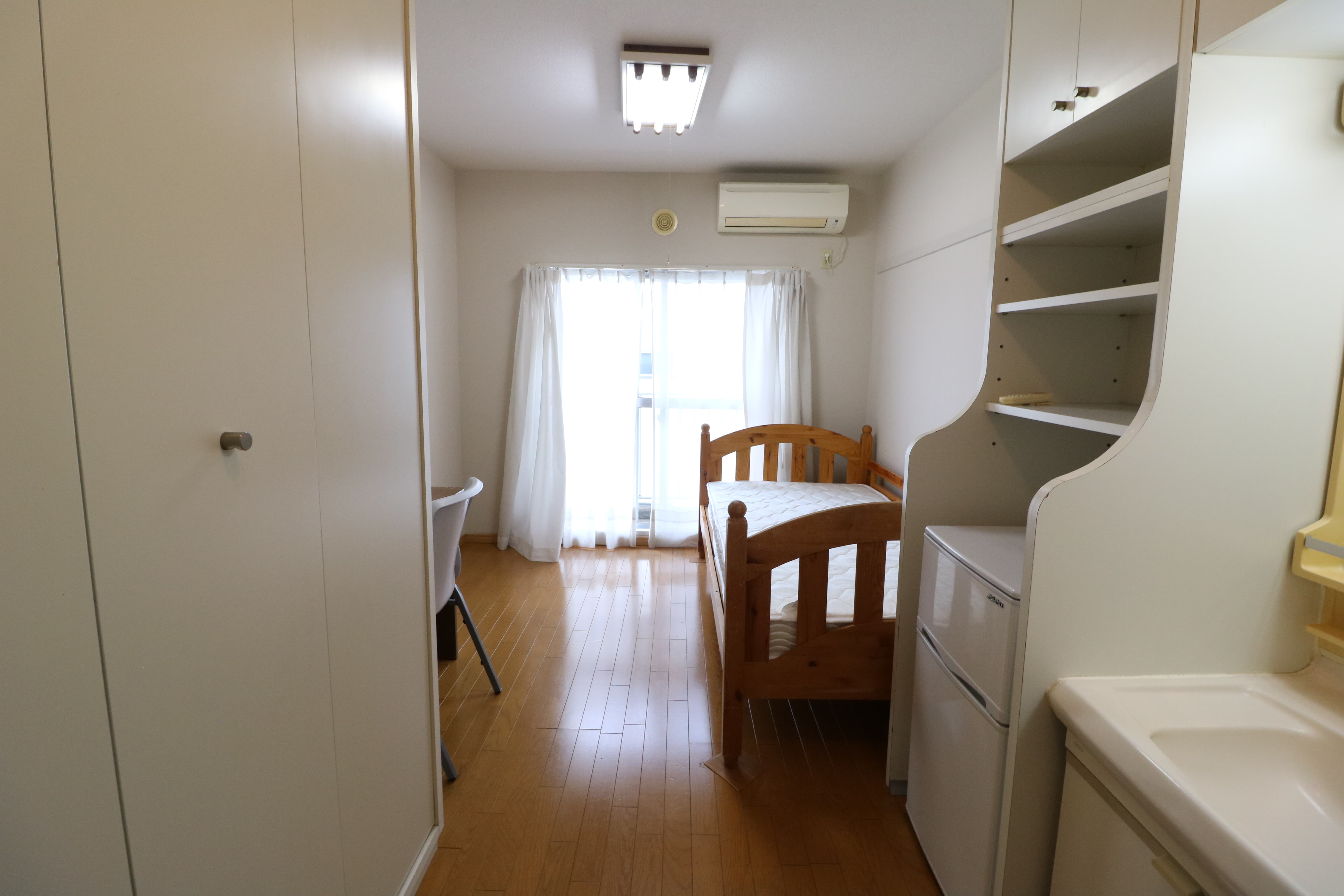 | 部屋設備 | 机、イス、冷蔵庫、ベッド、照明器具、エアコン、カーテン、収納、洗面台、バルコニー |