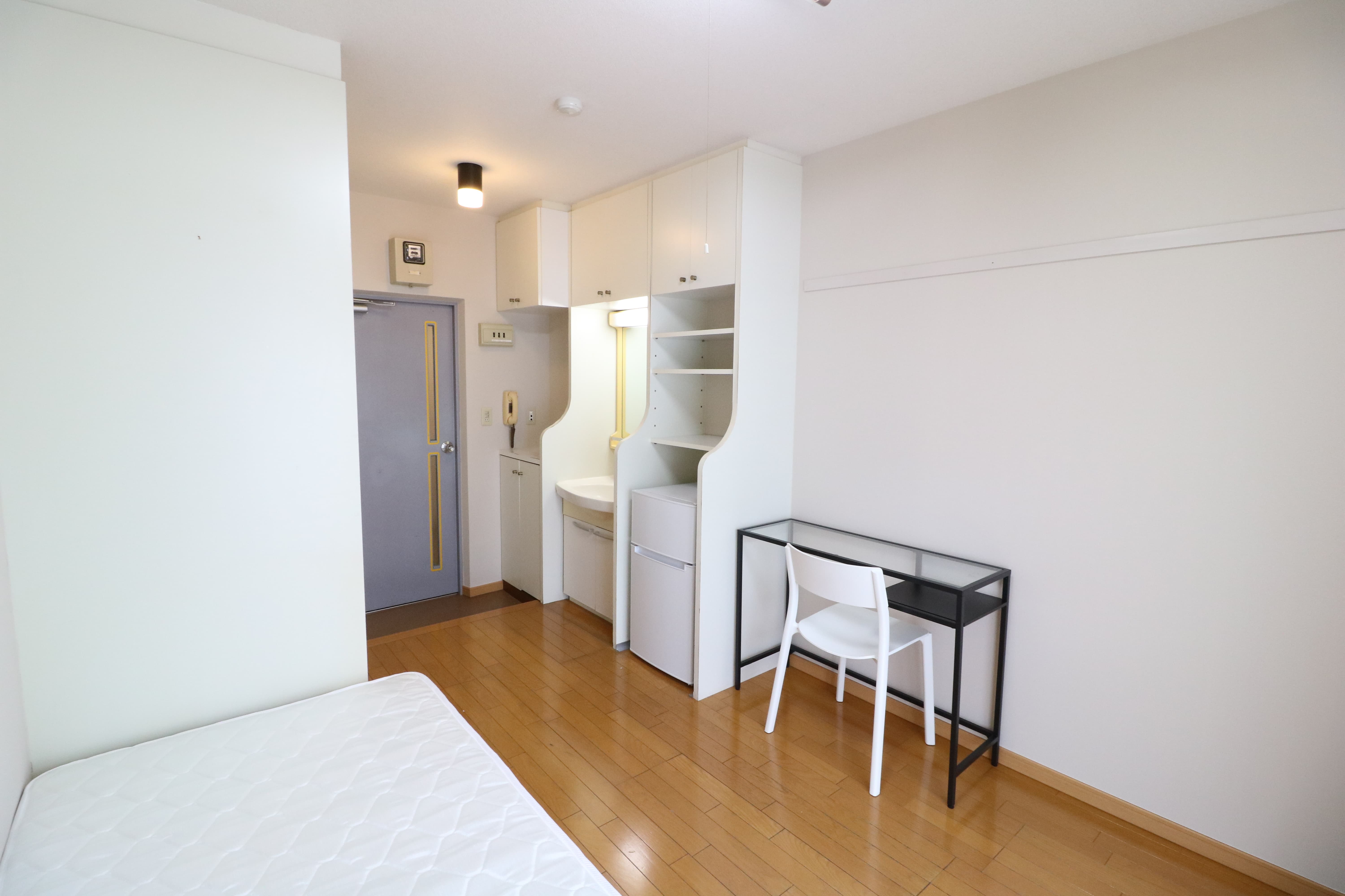 | 部屋設備 | 机、イス、冷蔵庫、ベッド、照明器具、エアコン、カーテン、収納、洗面台、バルコニー |