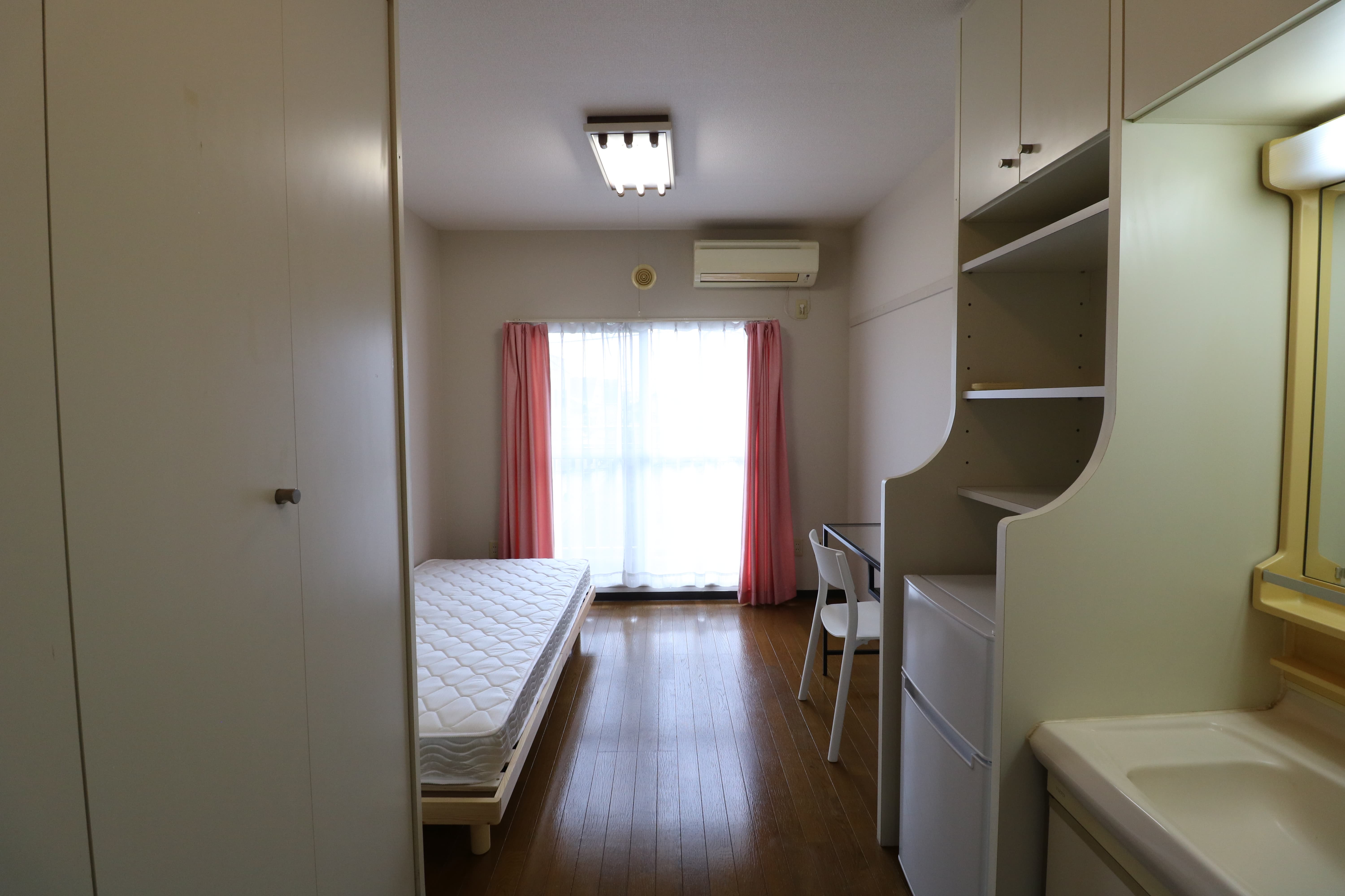 | 部屋設備 | 机、イス、冷蔵庫、ベッド、照明器具、エアコン、カーテン、収納、洗面台、バルコニー |