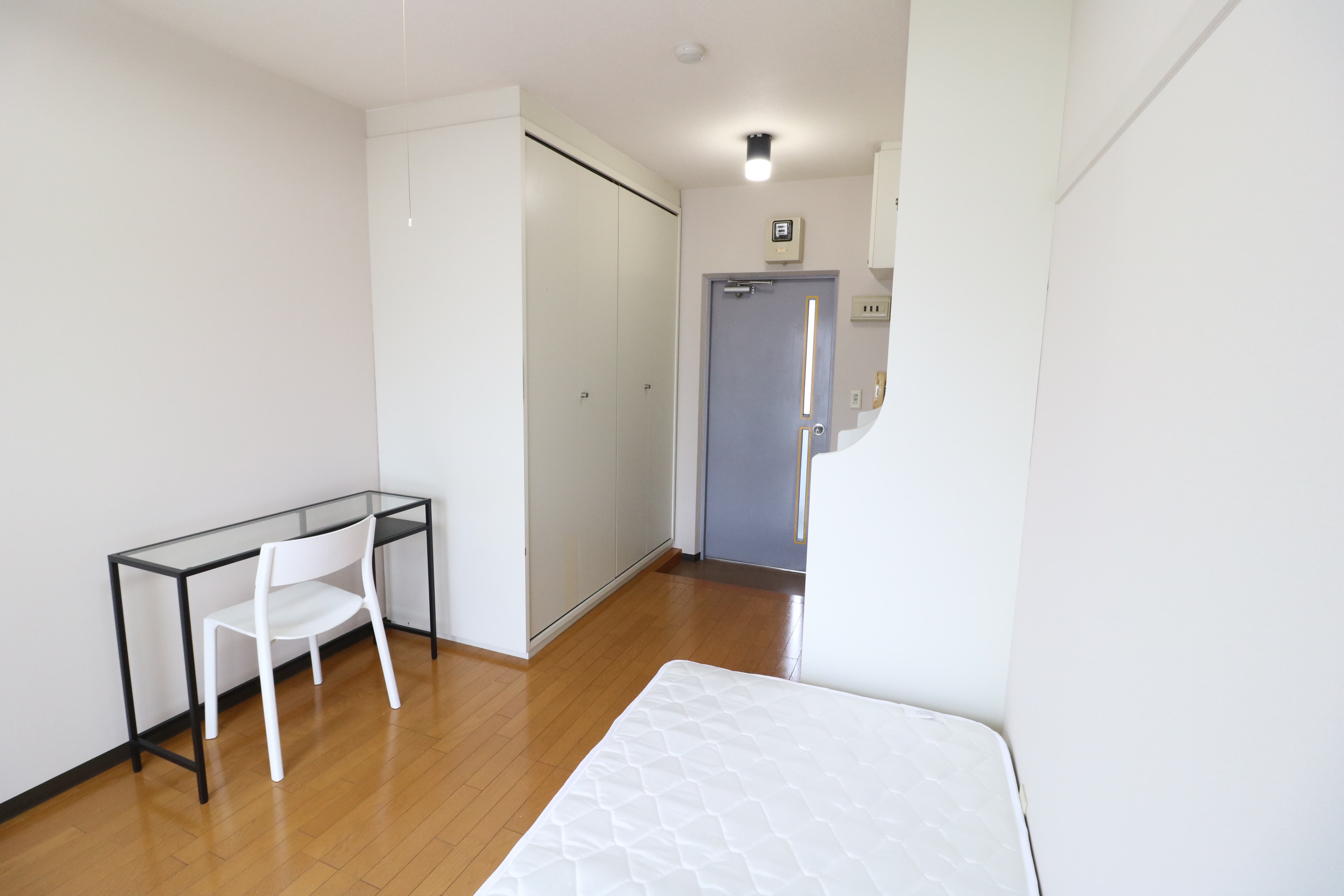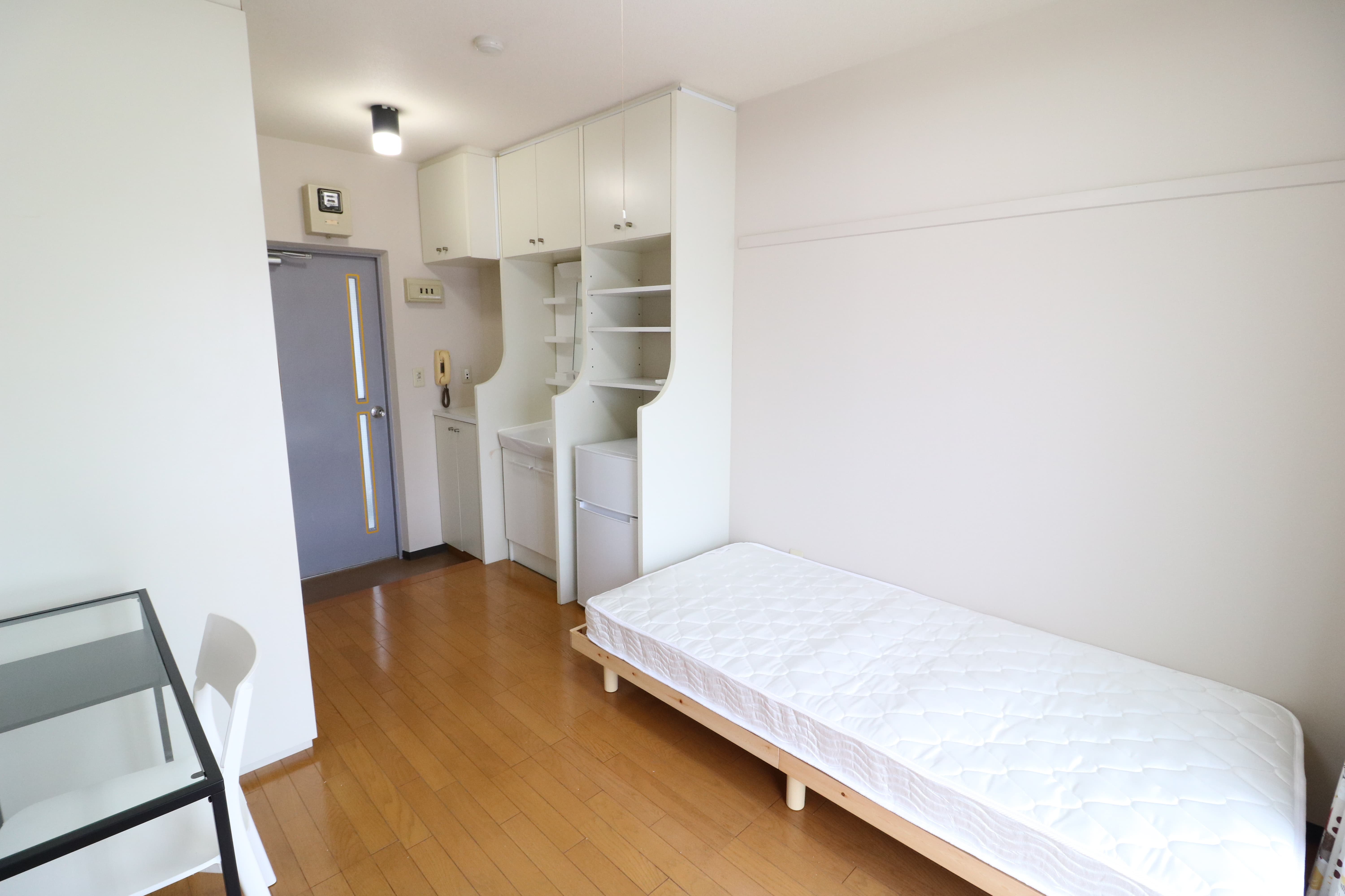 | 部屋設備 | 机、イス、冷蔵庫、ベッド、照明器具、エアコン、カーテン、収納、洗面台、バルコニー |