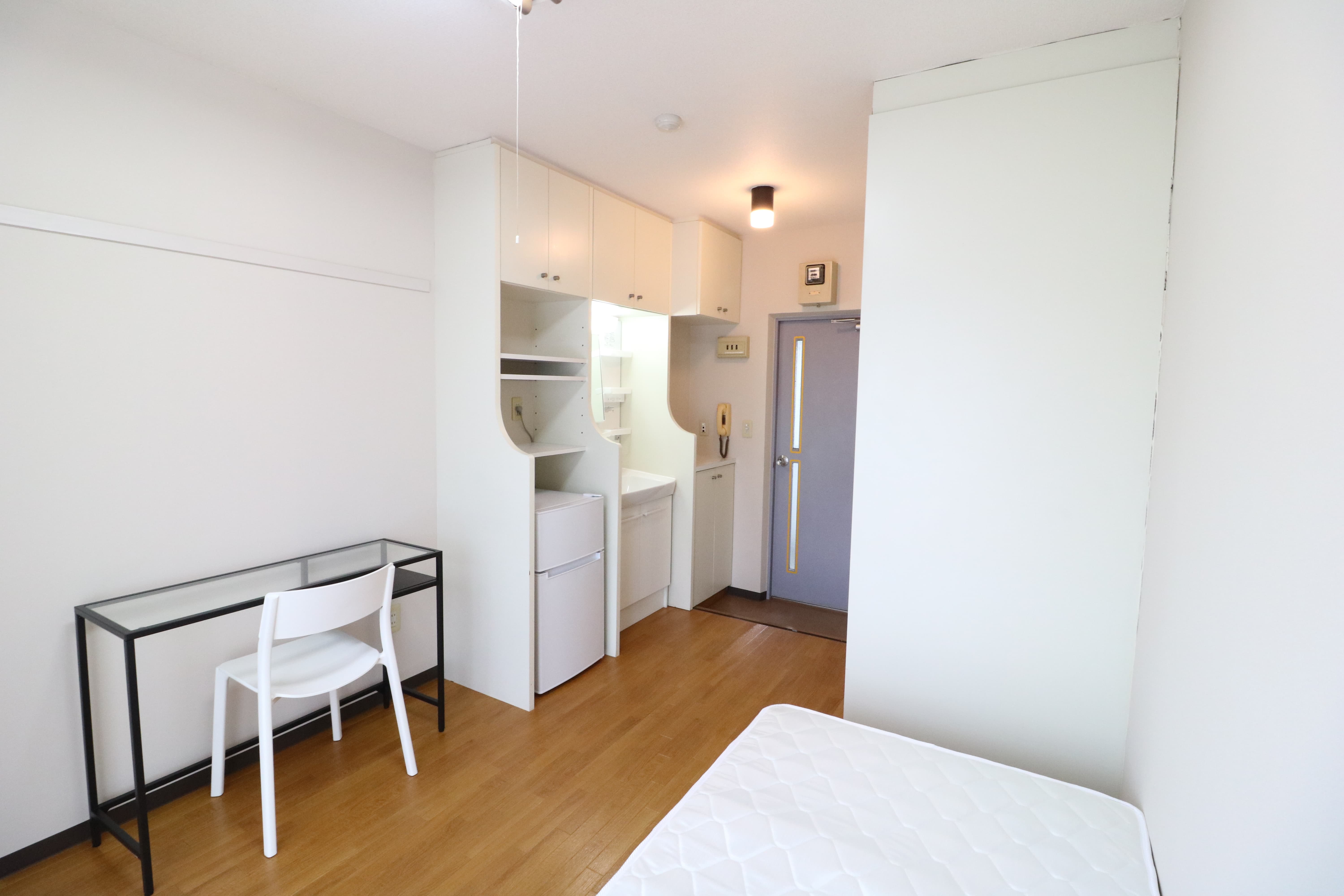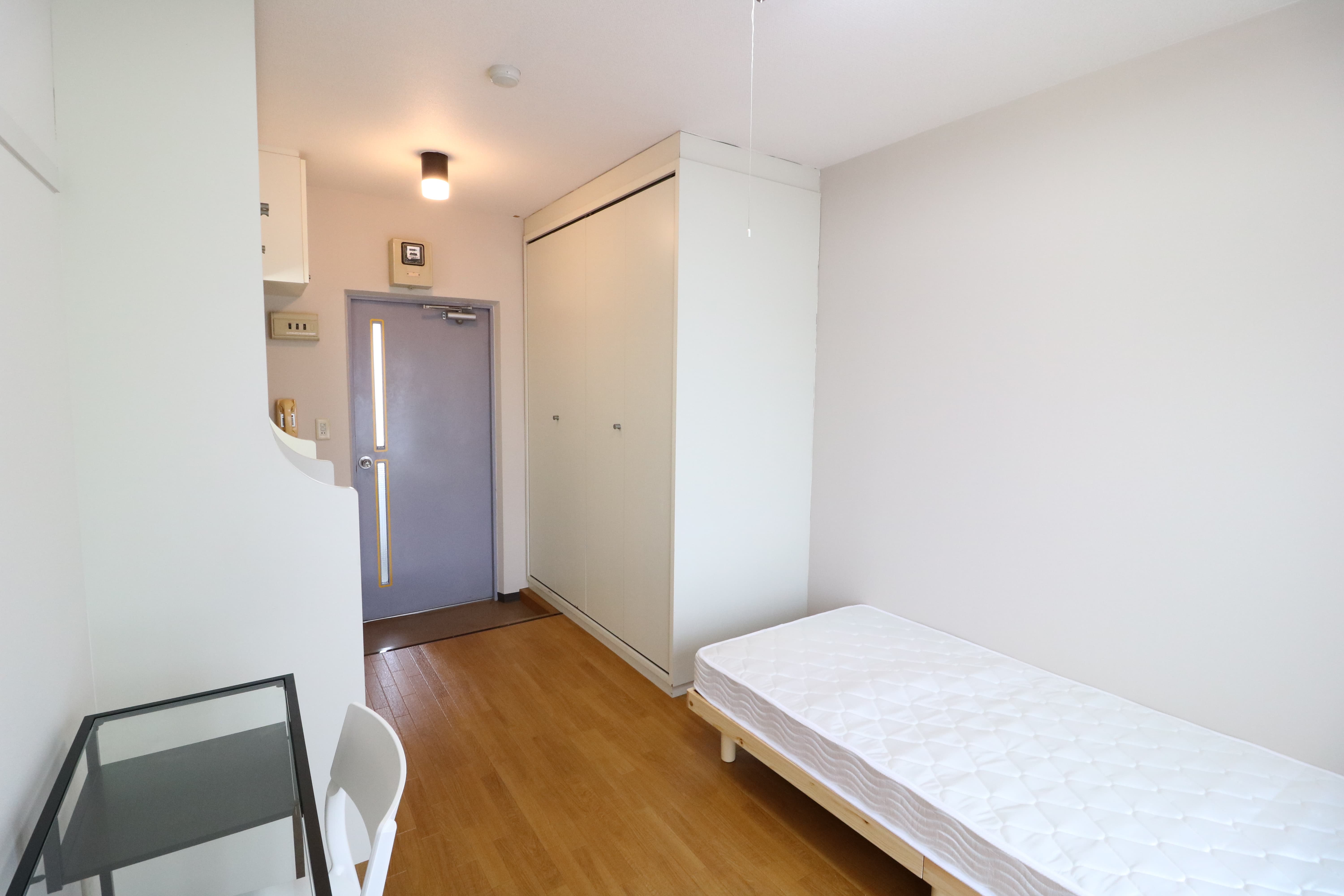 | 部屋設備 | 机、イス、冷蔵庫、ベッド、照明器具、エアコン、カーテン、収納、洗面台、バルコニー |