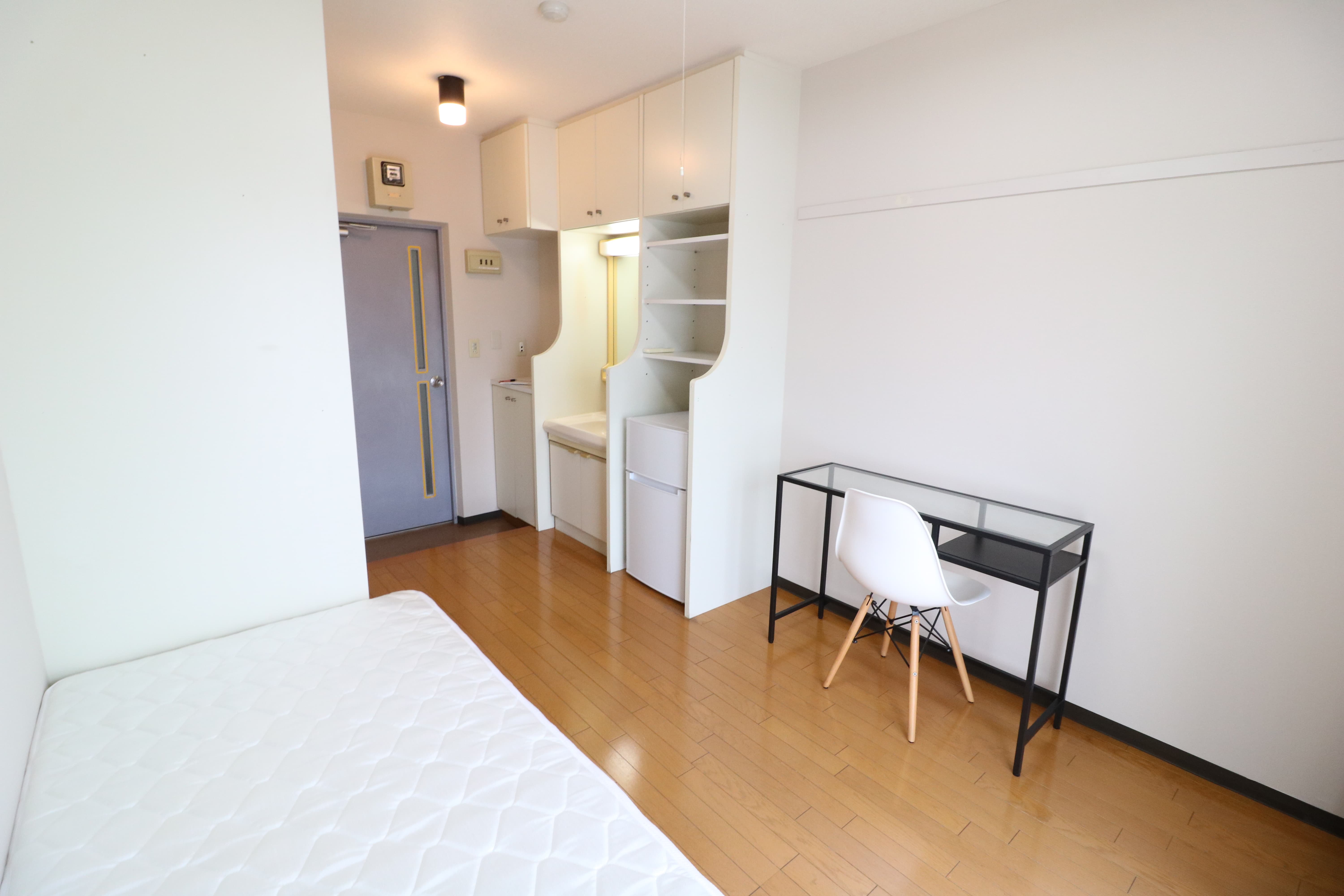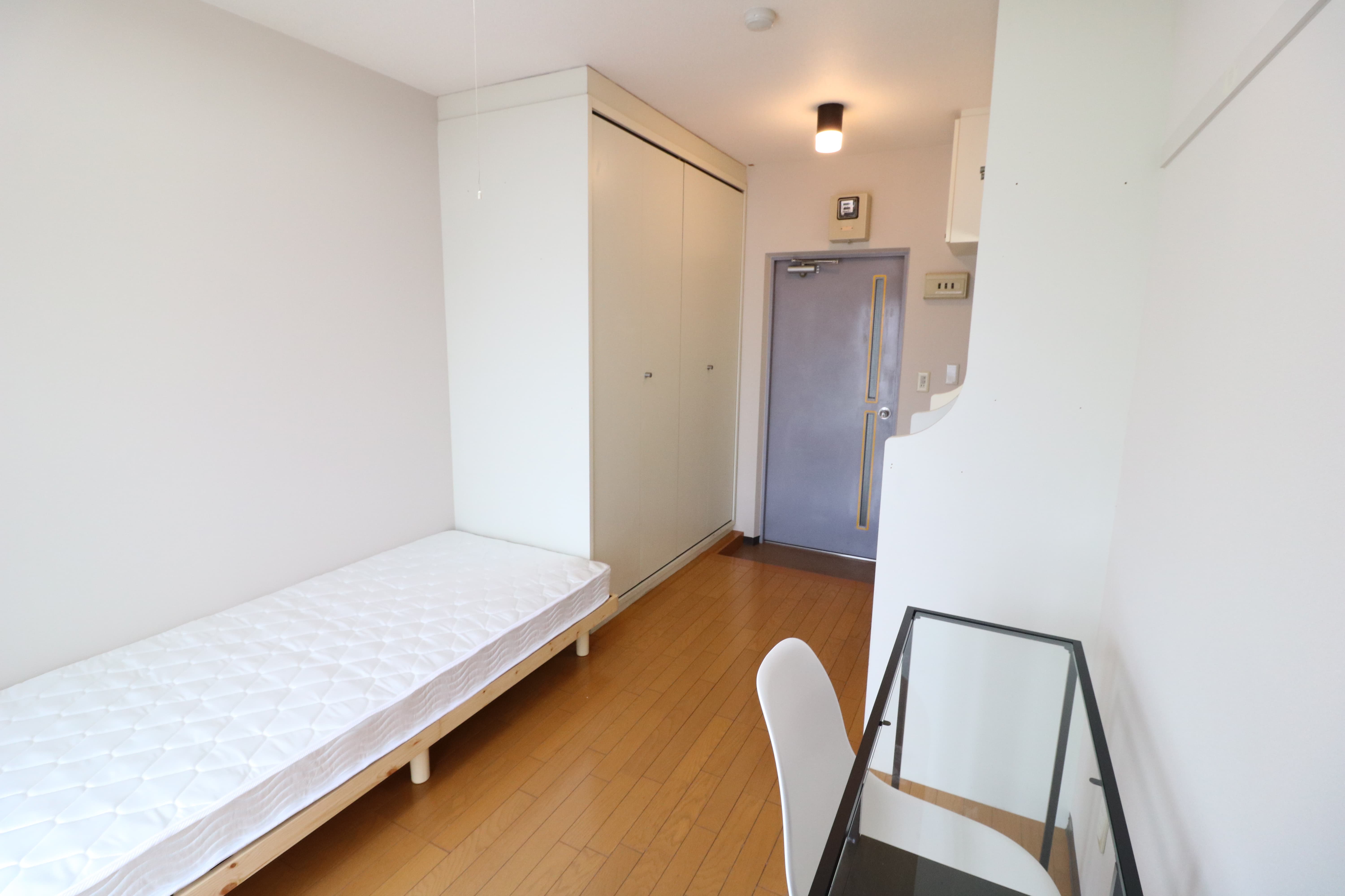 | 部屋設備 | 机、イス、冷蔵庫、ベッド、照明器具、エアコン、カーテン、収納、洗面台、バルコニー |