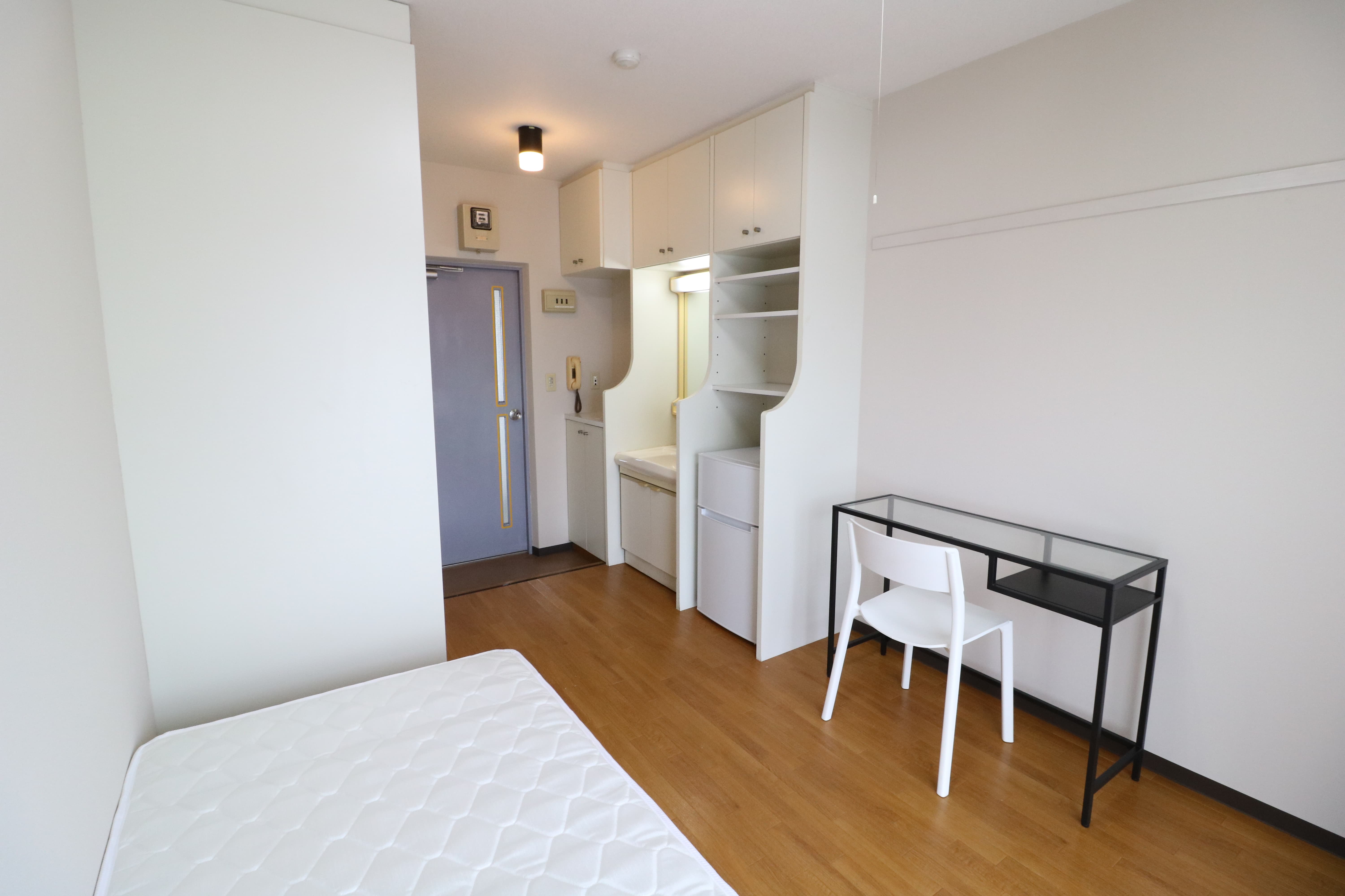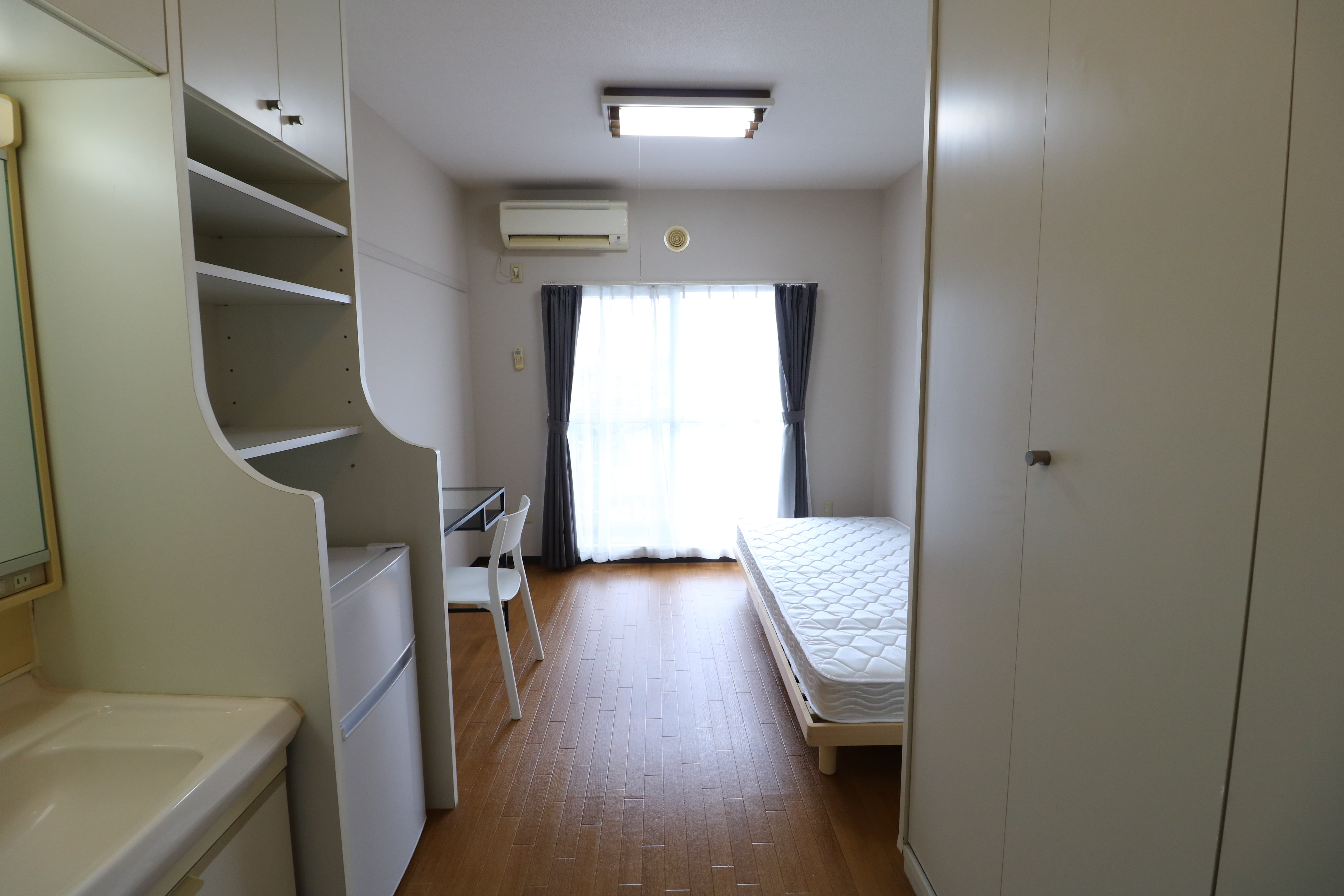| 部屋設備 | 机、イス、冷蔵庫、ベッド、照明器具、エアコン、カーテン、収納、洗面台、バルコニー |