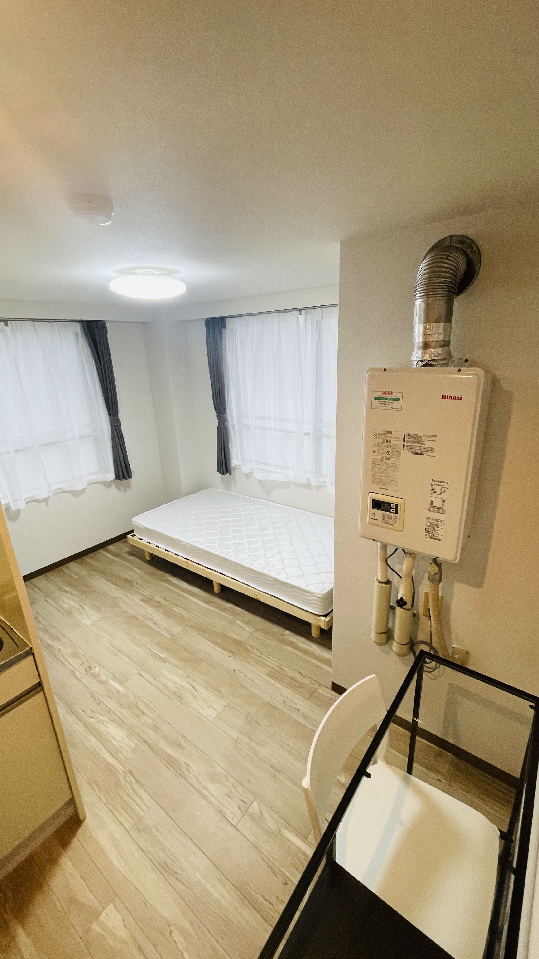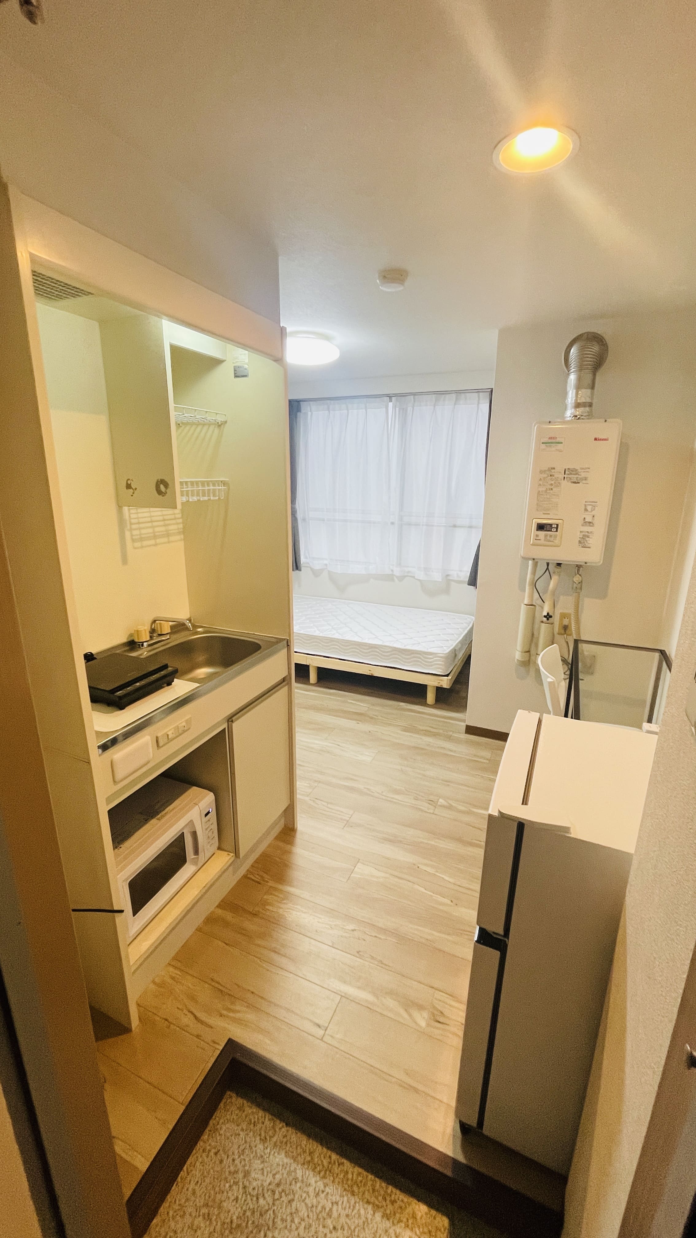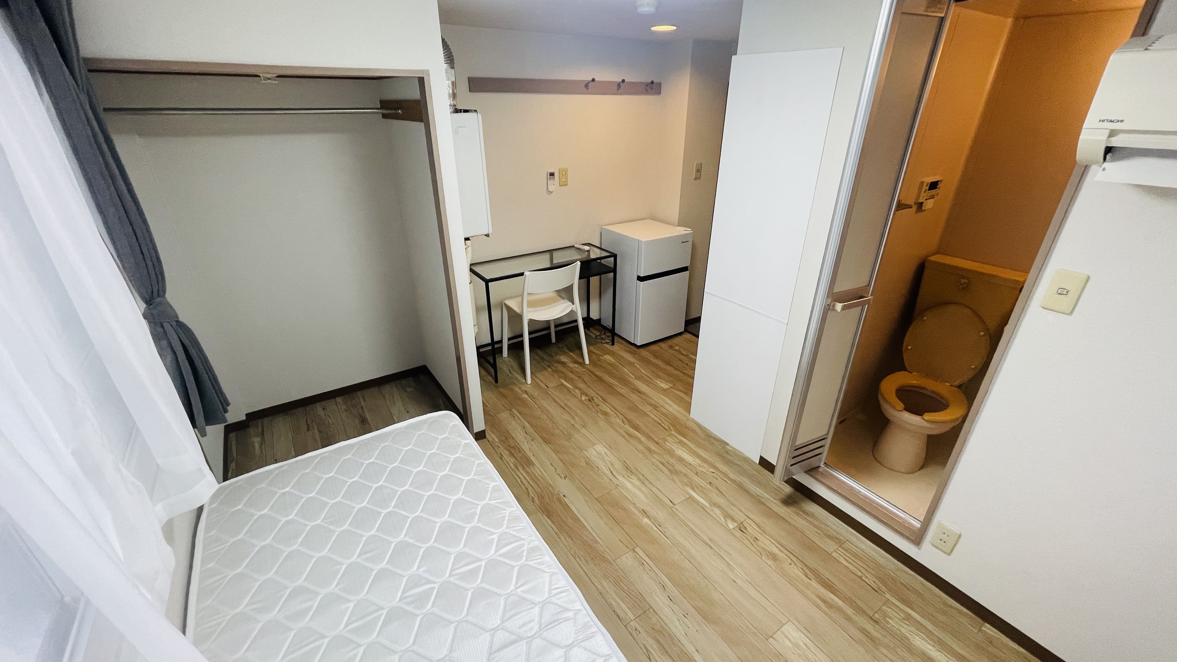 | 部屋設備 | 机、イス、照明器具、エアコン、冷蔵庫、カーテン、クローゼット,シングルベットフレーム , マットレス,キッチン,電子レンジ,3点ユニットバス |