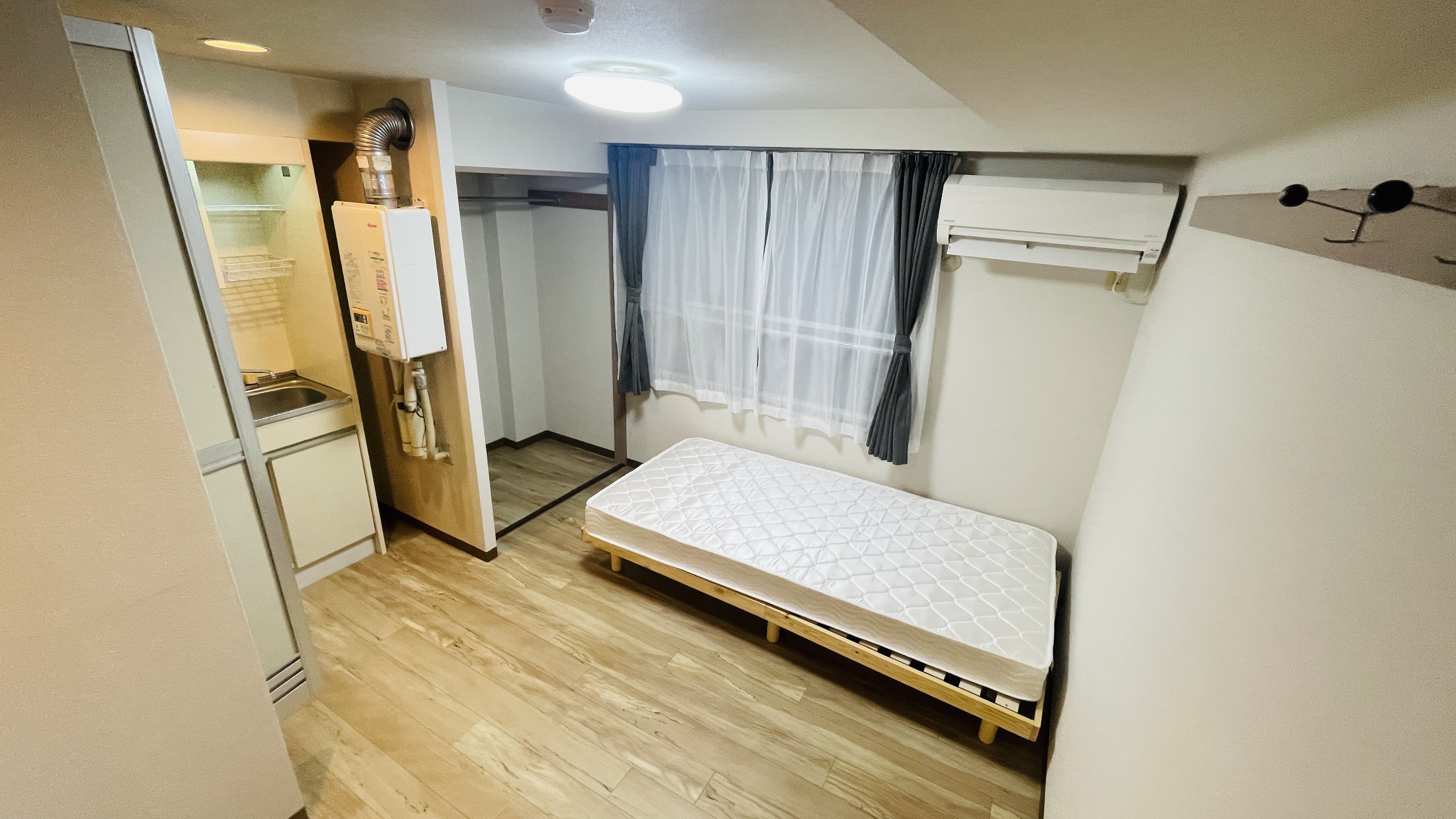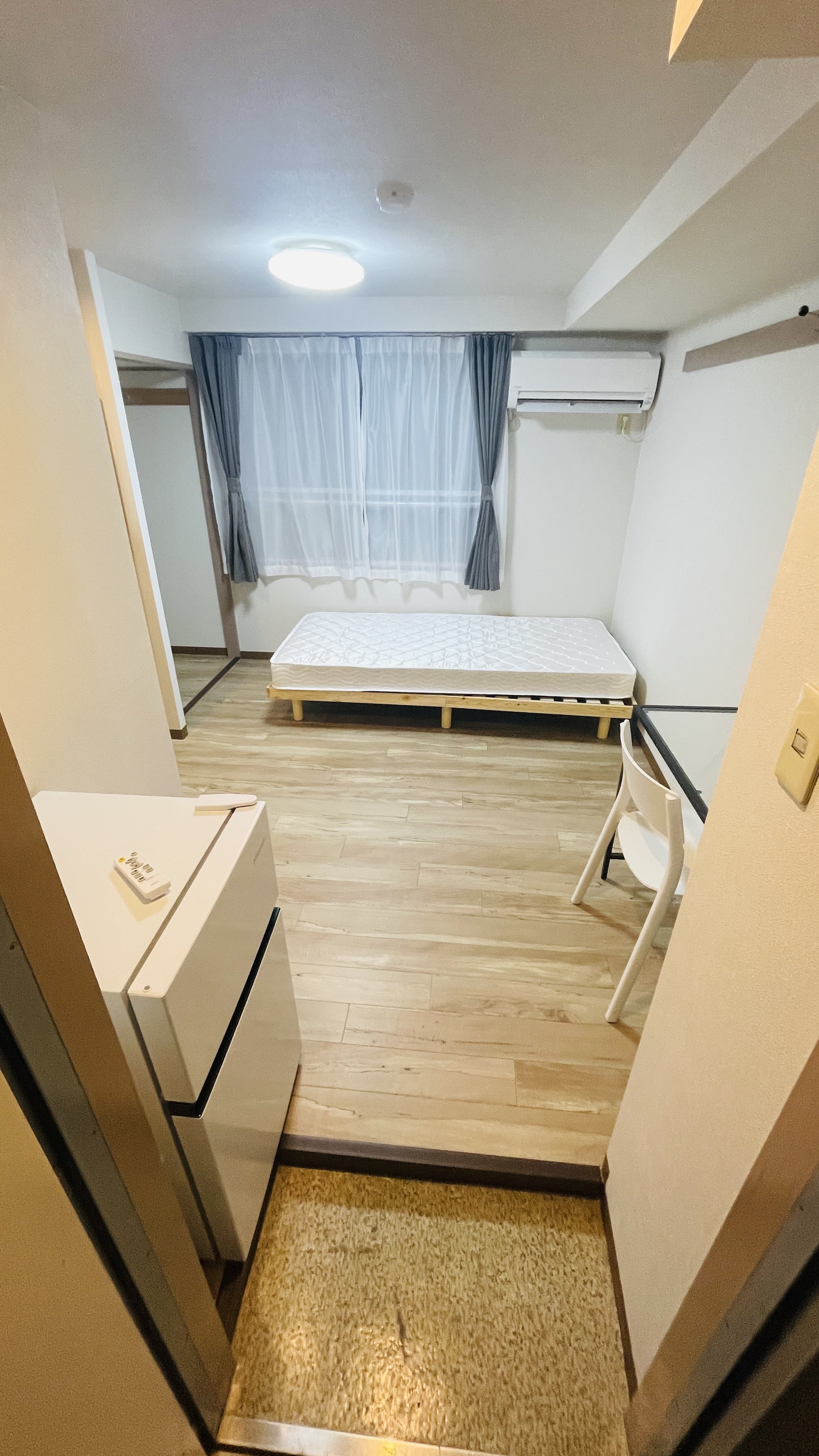 | 部屋設備 | 机、イス、照明器具、エアコン、冷蔵庫、カーテン、クローゼット,シングルベットフレーム , マットレス,キッチン,電子レンジ,3点ユニットバス |