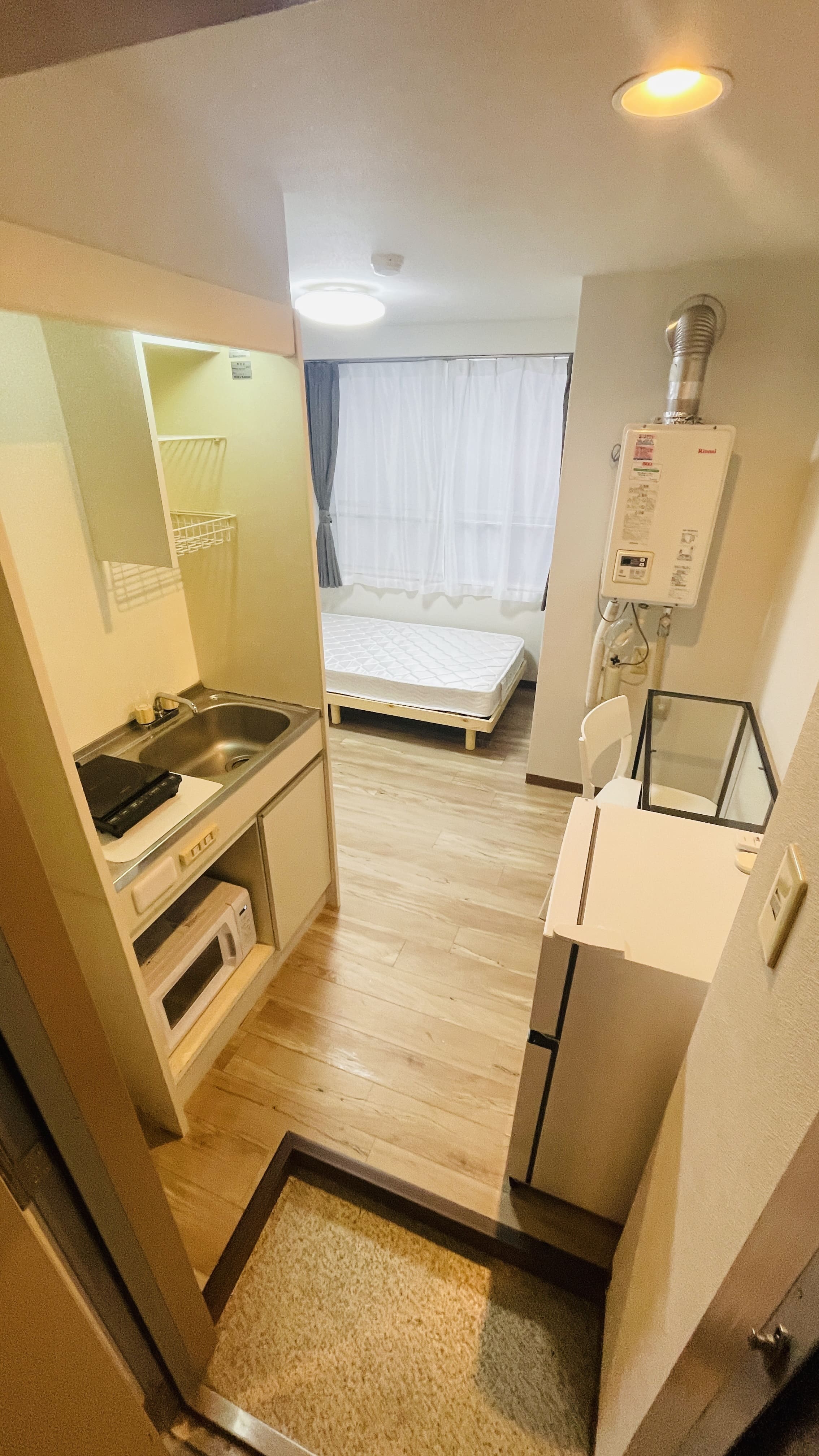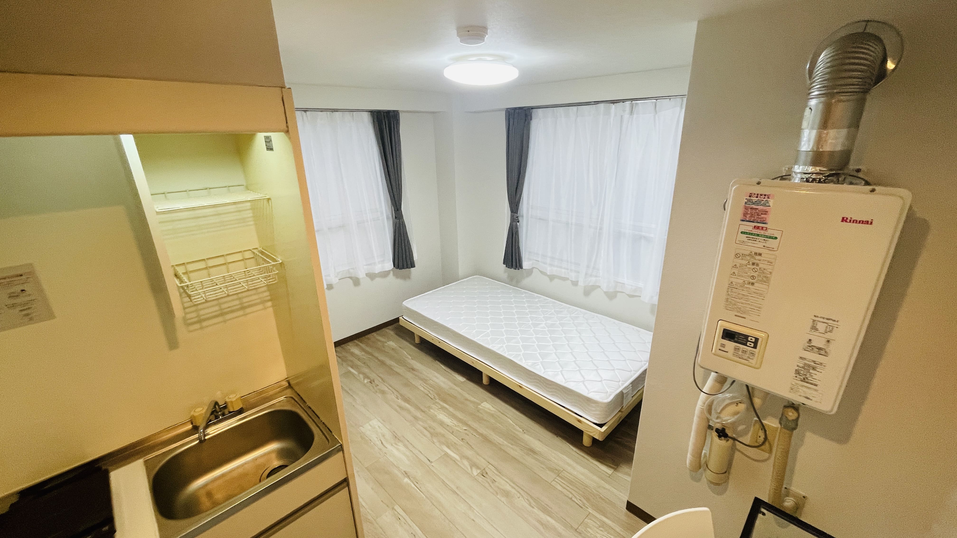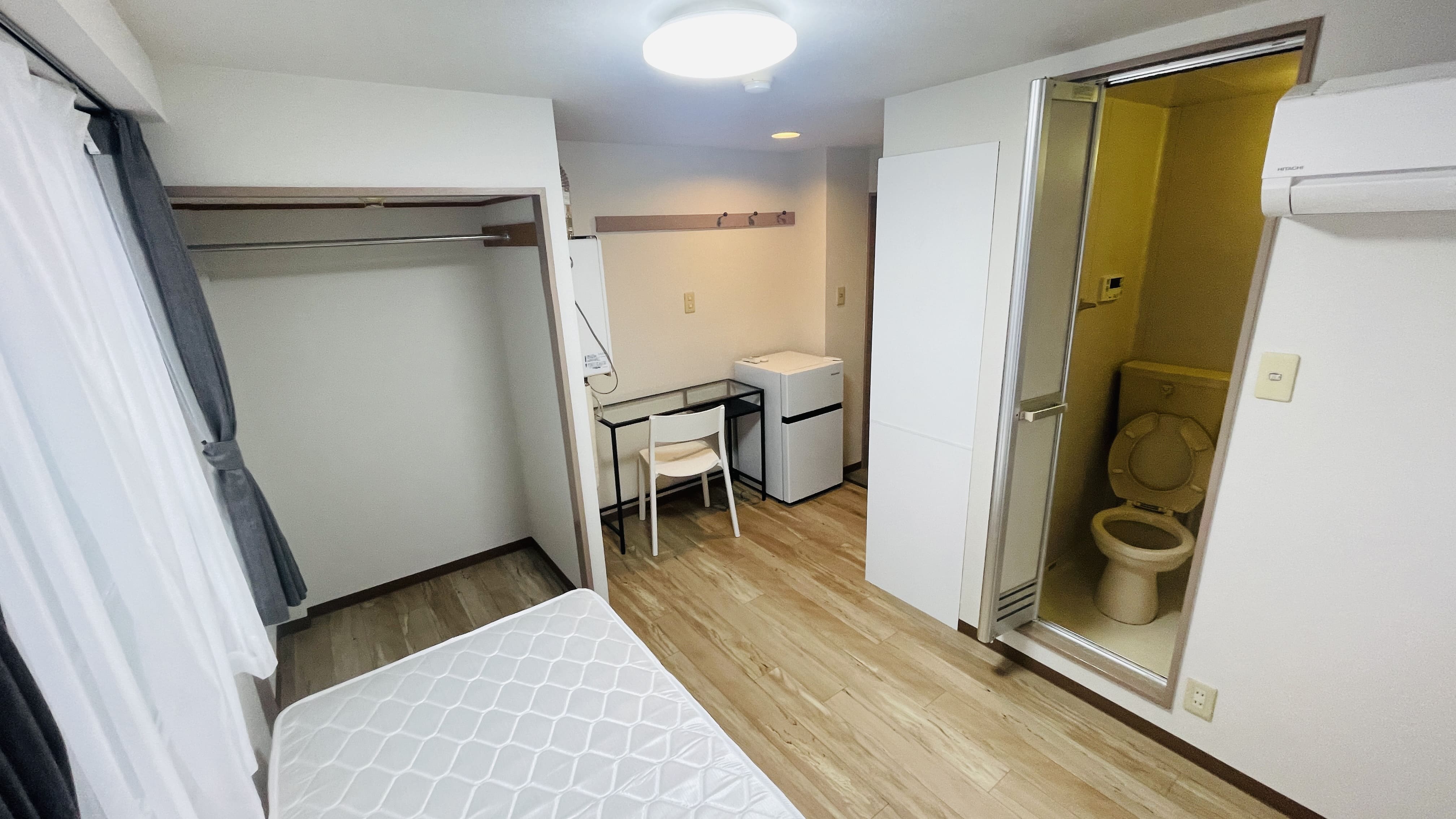 | 部屋設備 | 机、イス、照明器具、エアコン、冷蔵庫、カーテン、クローゼット,シングルベットフレーム , マットレス,キッチン,電子レンジ,3点ユニットバス |