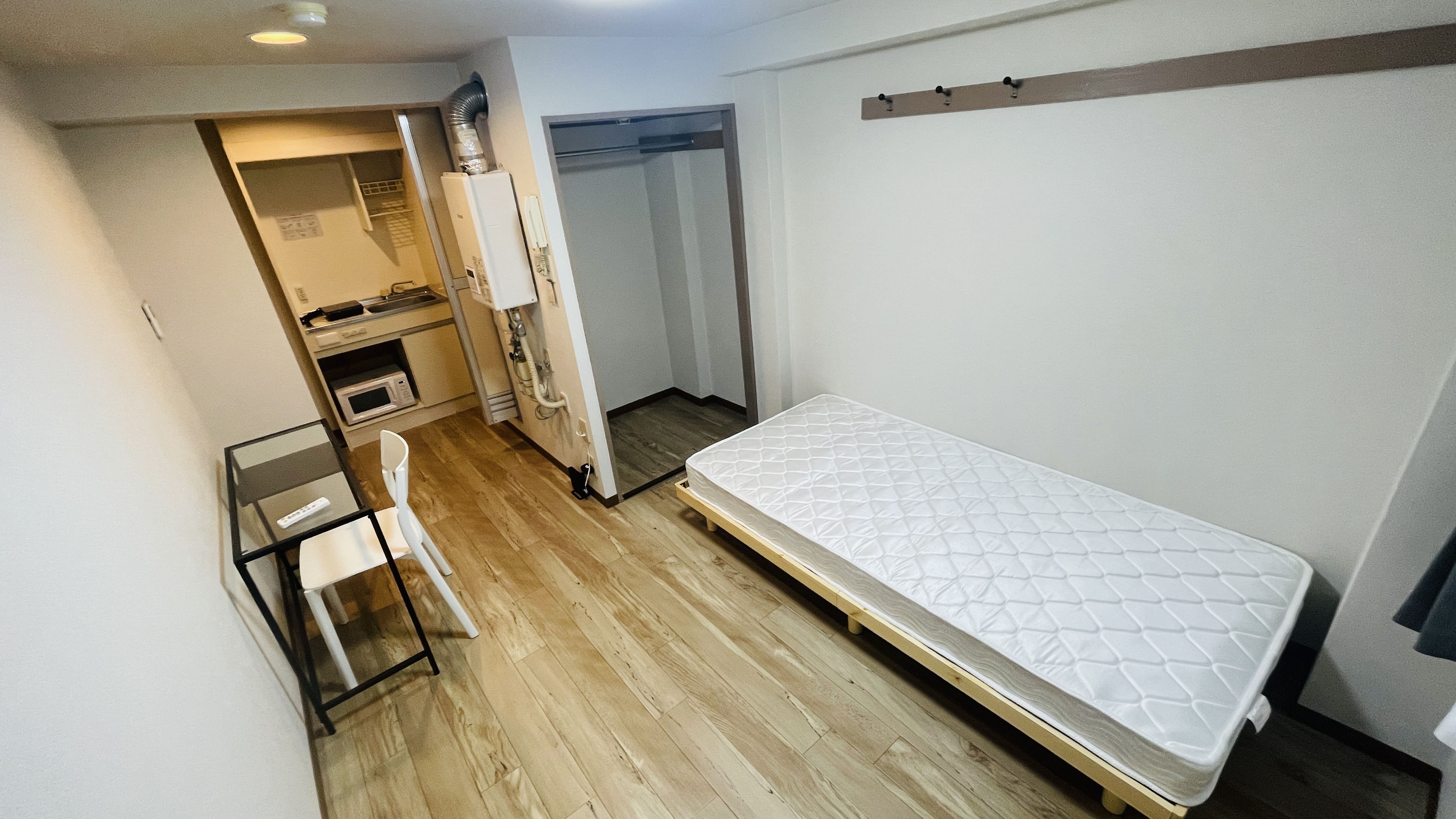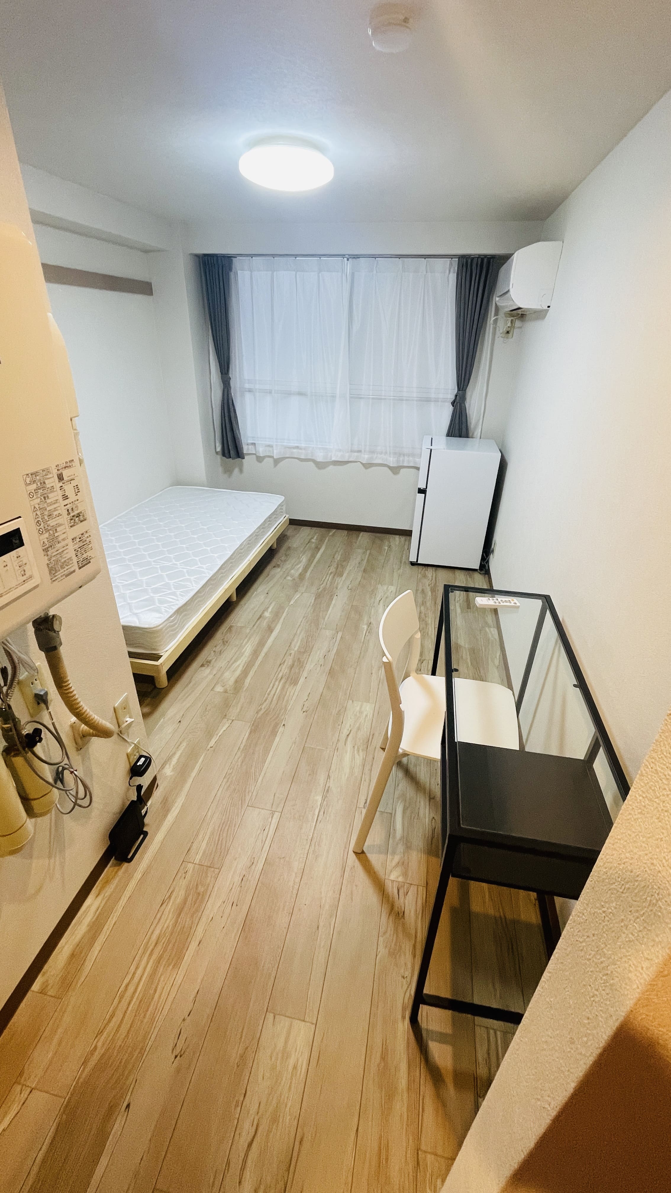 | 部屋設備 | 机、イス、照明器具、エアコン、冷蔵庫、カーテン、クローゼット,シングルベットフレーム , マットレス,キッチン,電子レンジ,3点ユニットバス |