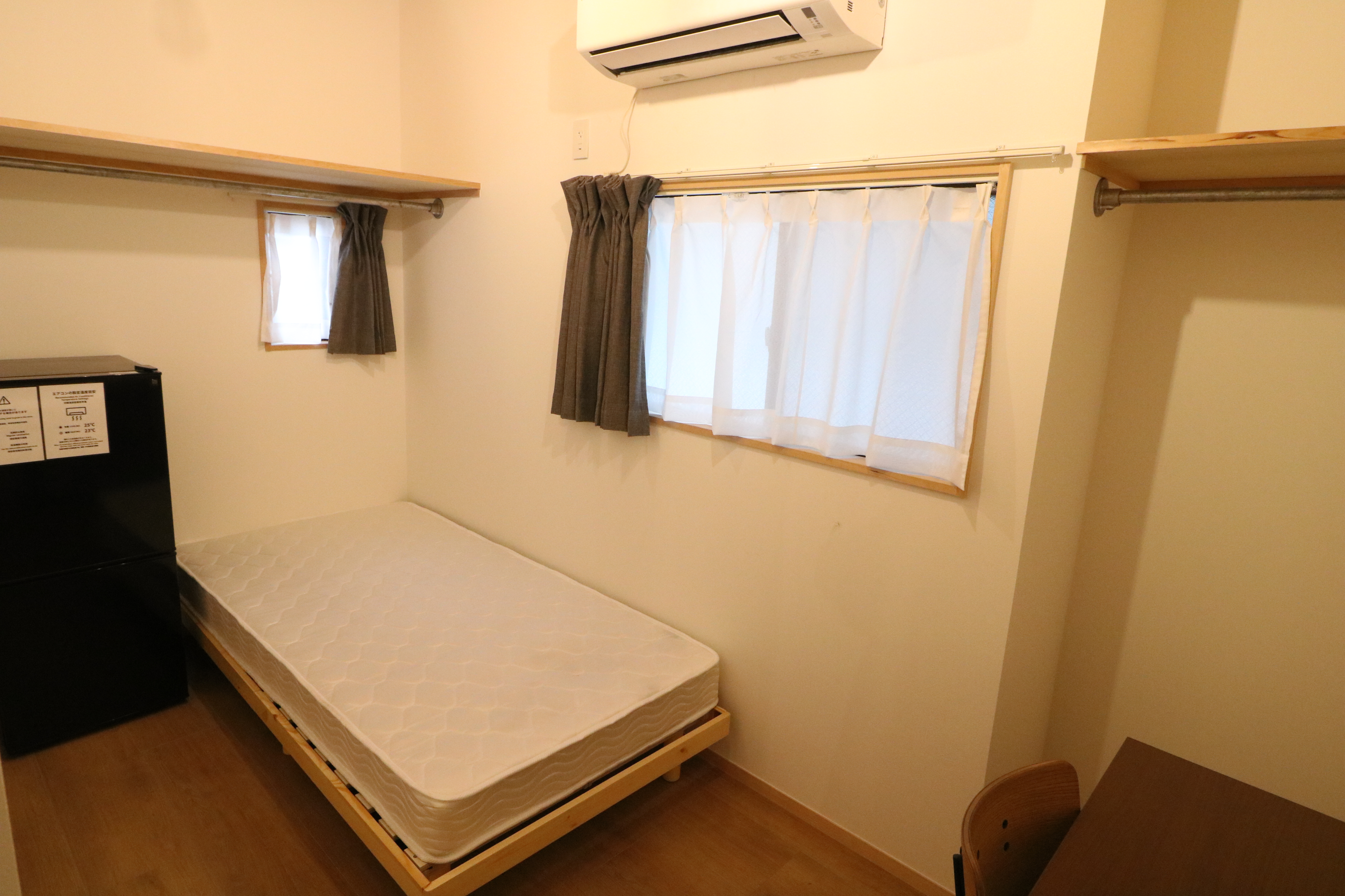 | 部屋設備 | AC、照明、机、椅子、収納、冷蔵庫、室内物干し、インターネット(無線) |
