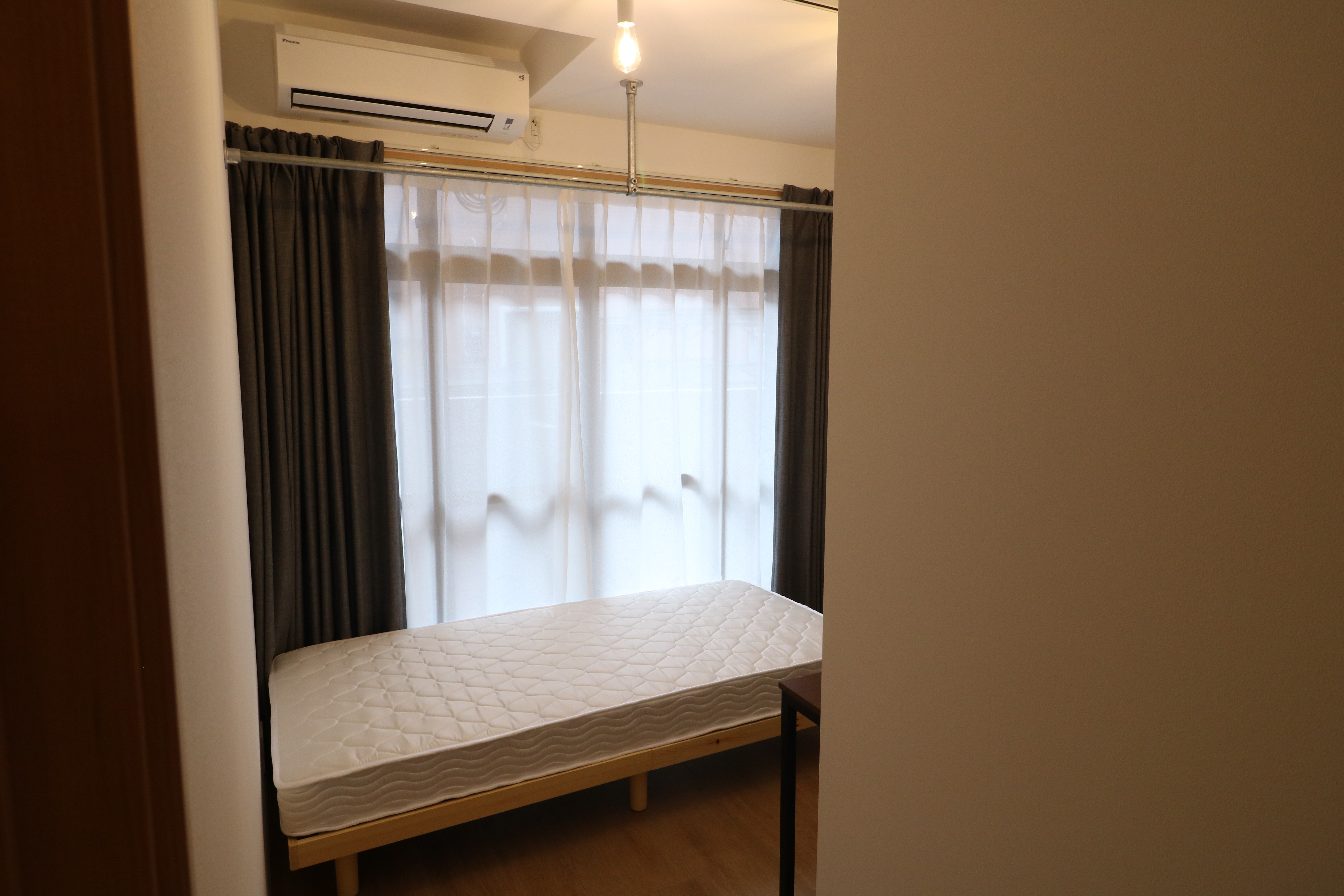 | 部屋設備 | AC、照明、机、椅子、収納、冷蔵庫、室内物干し、インターネット(無線) |